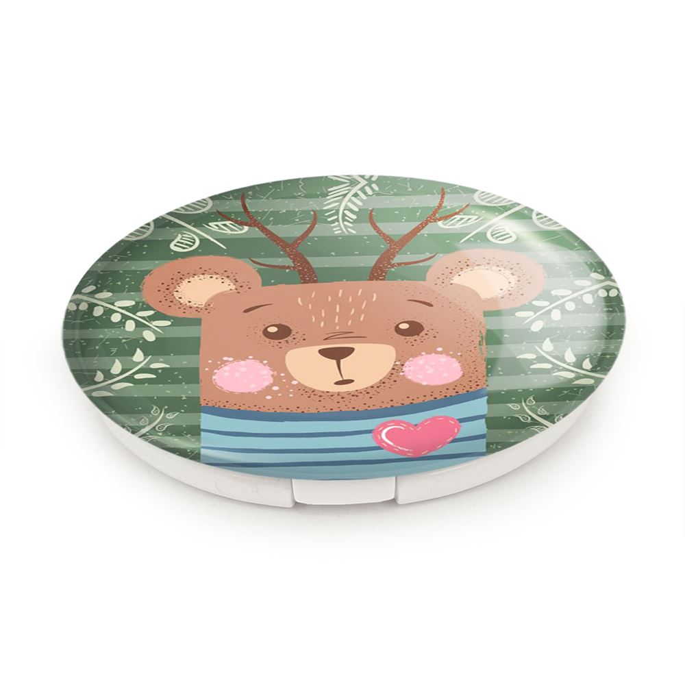 آینه های تاشو خرس خندالو، از جنس پلاستیک فشرده ABS تولید شده و به رنگ سفید می باشد. یکی از آینه ها ابعاد واقعی را نشان داده و دیگری با قابلیت بزرگنمایی، جزئیات را بهتر نمایش می دهد.