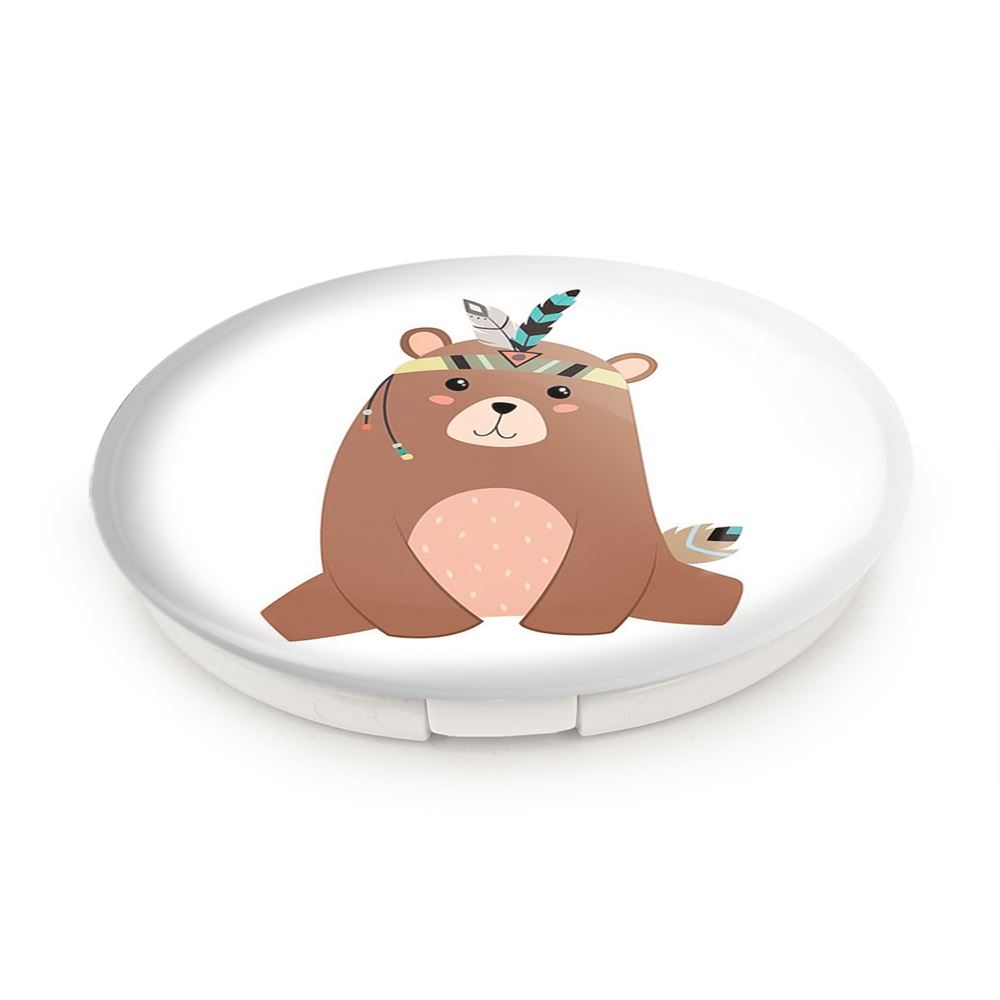 آینه های تاشو خرس خندالو، از جنس پلاستیک فشرده ABS تولید شده و به رنگ سفید می باشد. یکی از آینه ها ابعاد واقعی را نشان داده و دیگری با قابلیت بزرگنمایی، جزئیات را بهتر نمایش می دهد.