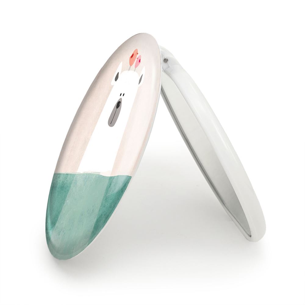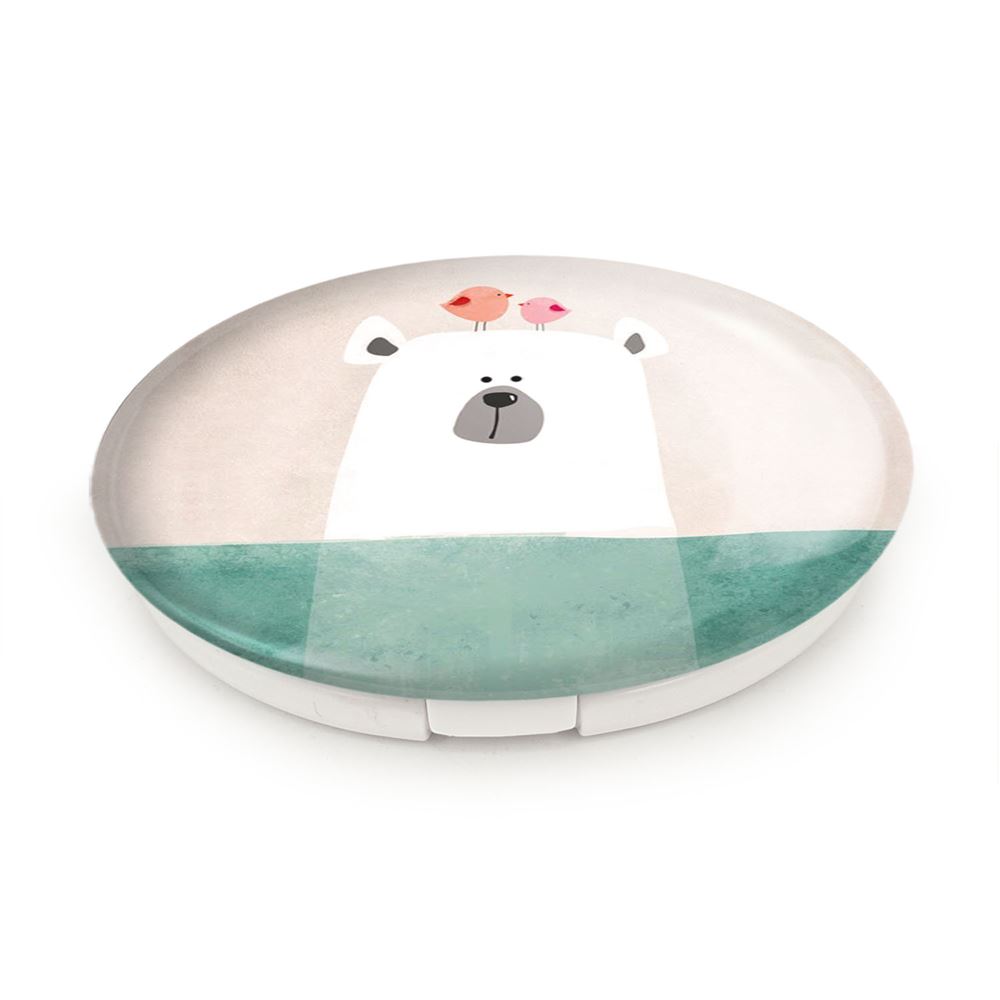 آینه های تاشو خرس خندالو، از جنس پلاستیک فشرده ABS تولید شده و به رنگ سفید می باشد. یکی از آینه ها ابعاد واقعی را نشان داده و دیگری با قابلیت بزرگنمایی، جزئیات را بهتر نمایش می دهد.
