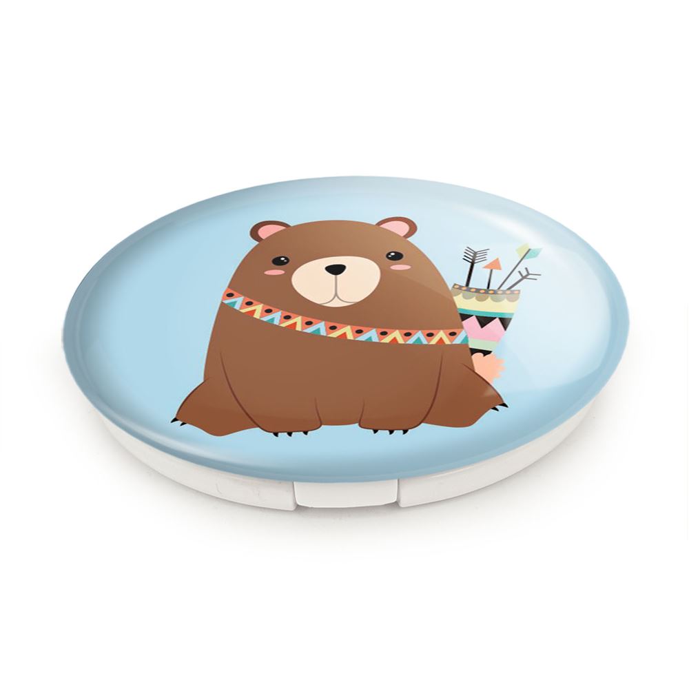 آینه های تاشو خرس خندالو، از جنس پلاستیک فشرده ABS تولید شده و به رنگ سفید می باشد. یکی از آینه ها ابعاد واقعی را نشان داده و دیگری با قابلیت بزرگنمایی، جزئیات را بهتر نمایش می دهد.