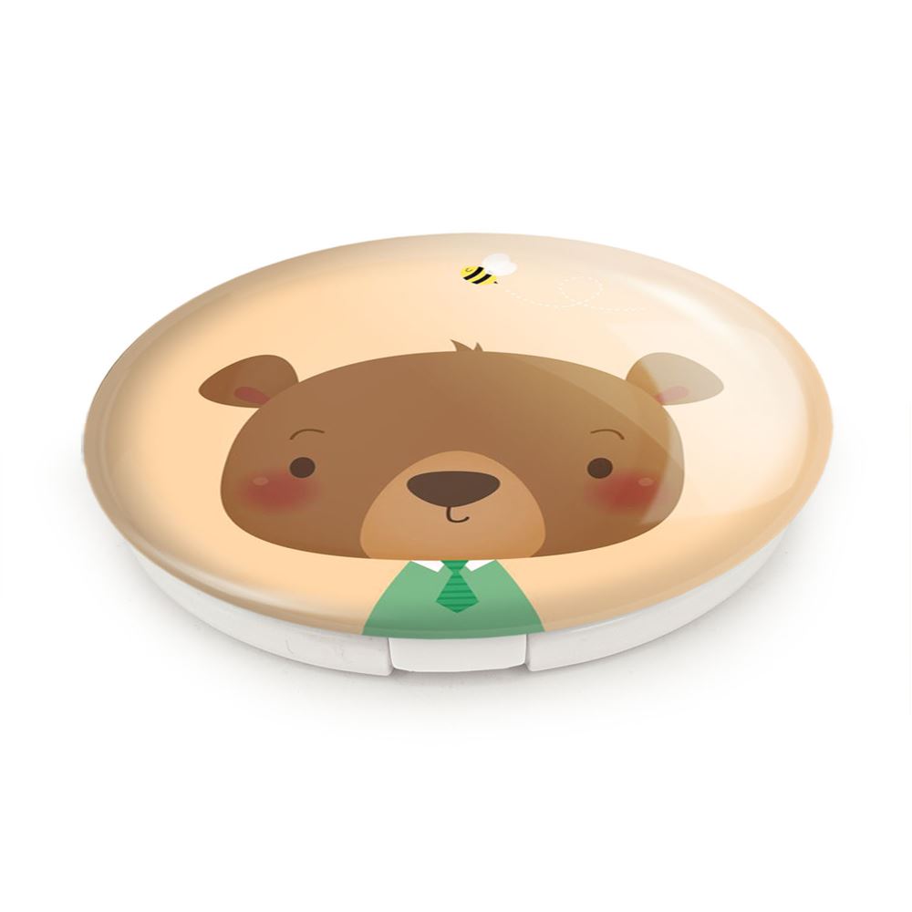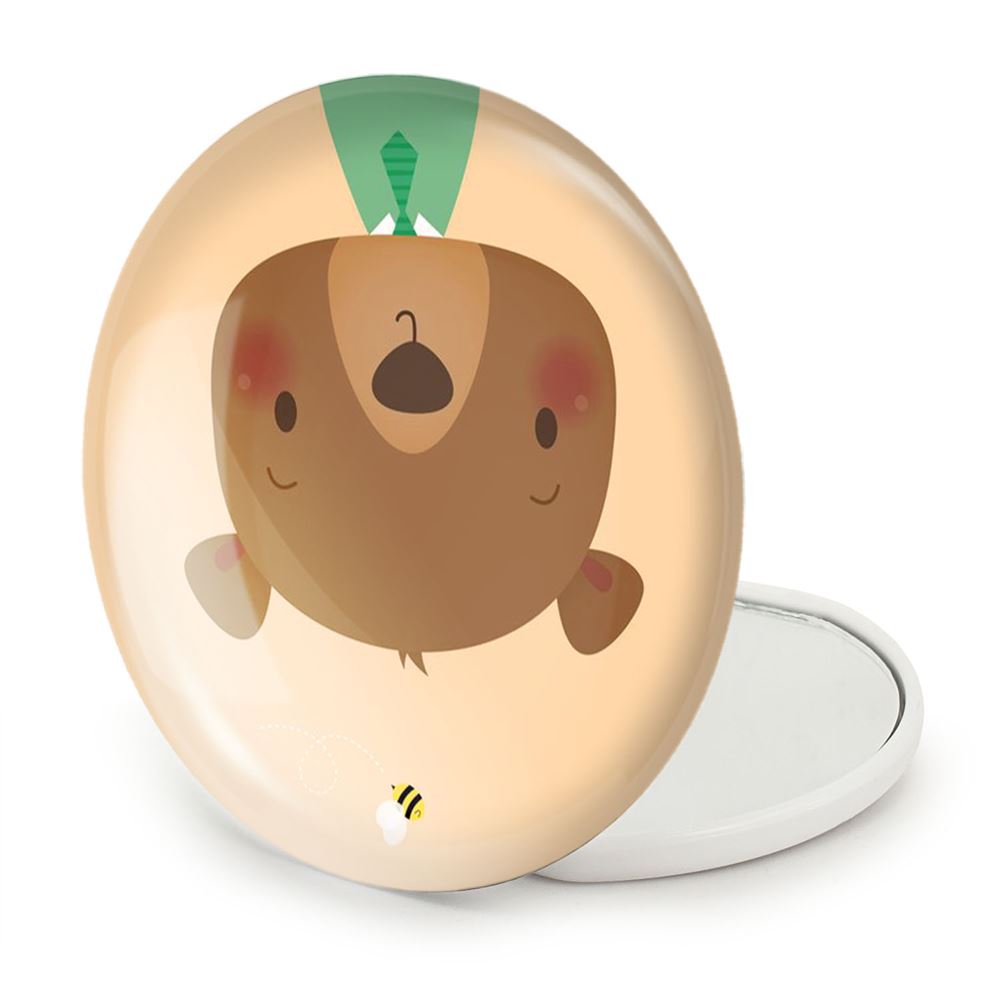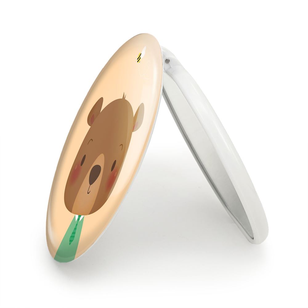 آینه های تاشو خرس خندالو، از جنس پلاستیک فشرده ABS تولید شده و به رنگ سفید می باشد. یکی از آینه ها ابعاد واقعی را نشان داده و دیگری با قابلیت بزرگنمایی، جزئیات را بهتر نمایش می دهد.