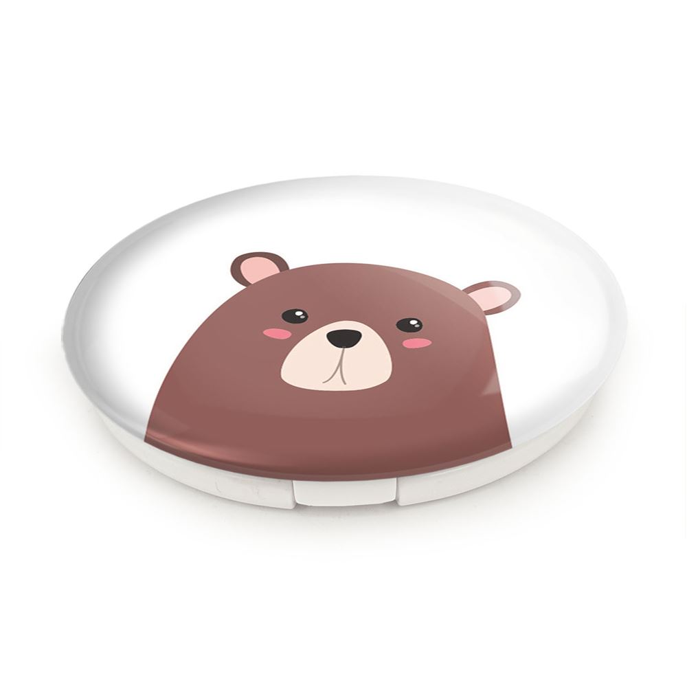 آینه های تاشو خرس خندالو، از جنس پلاستیک فشرده ABS تولید شده و به رنگ سفید می باشد. یکی از آینه ها ابعاد واقعی را نشان داده و دیگری با قابلیت بزرگنمایی، جزئیات را بهتر نمایش می دهد.