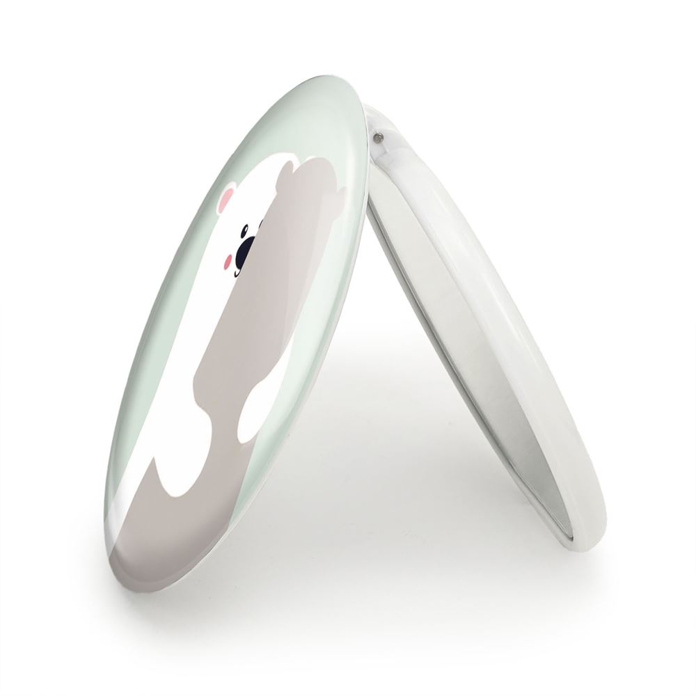 آینه های تاشو خرس خندالو، از جنس پلاستیک فشرده ABS تولید شده و به رنگ سفید می باشد. یکی از آینه ها ابعاد واقعی را نشان داده و دیگری با قابلیت بزرگنمایی، جزئیات را بهتر نمایش می دهد.