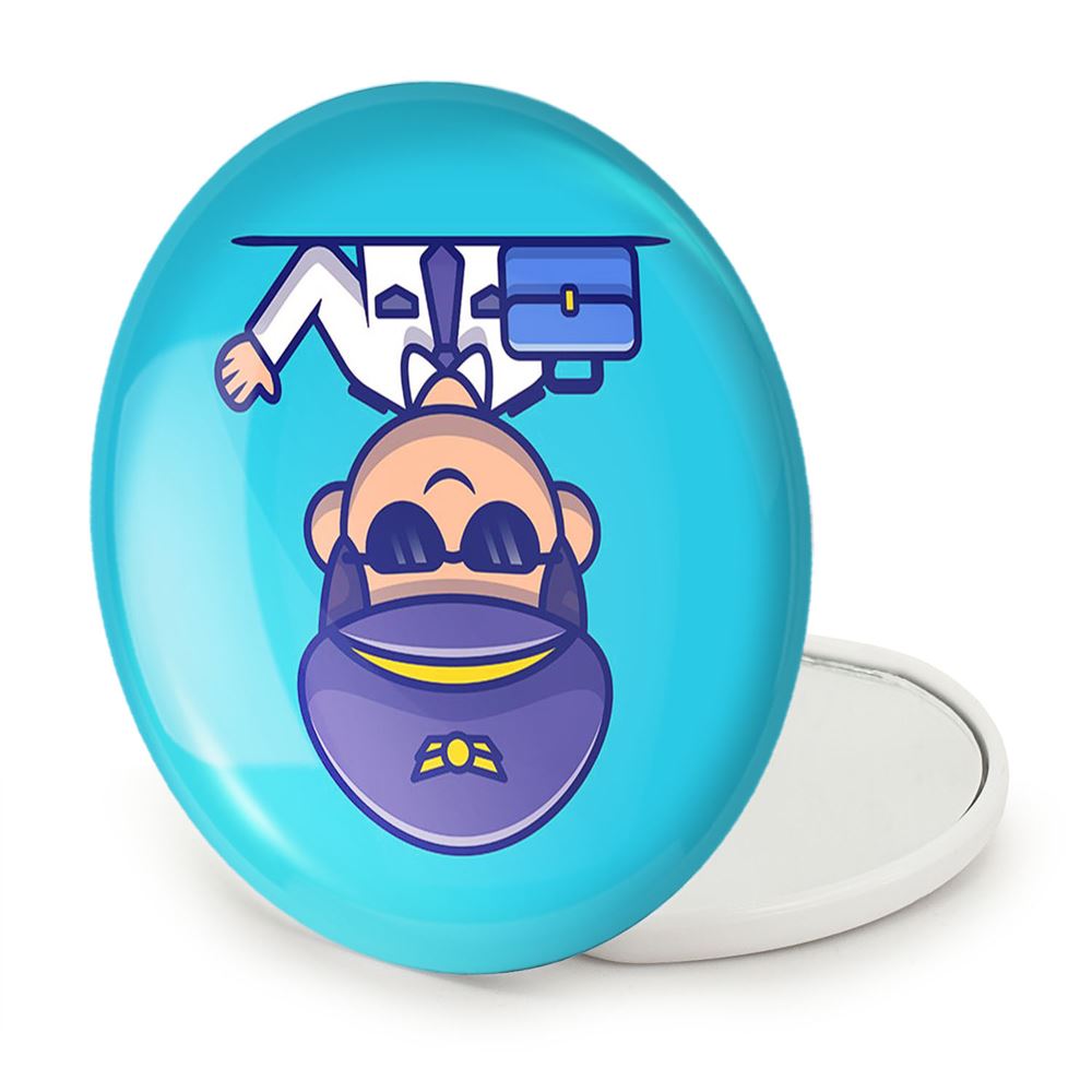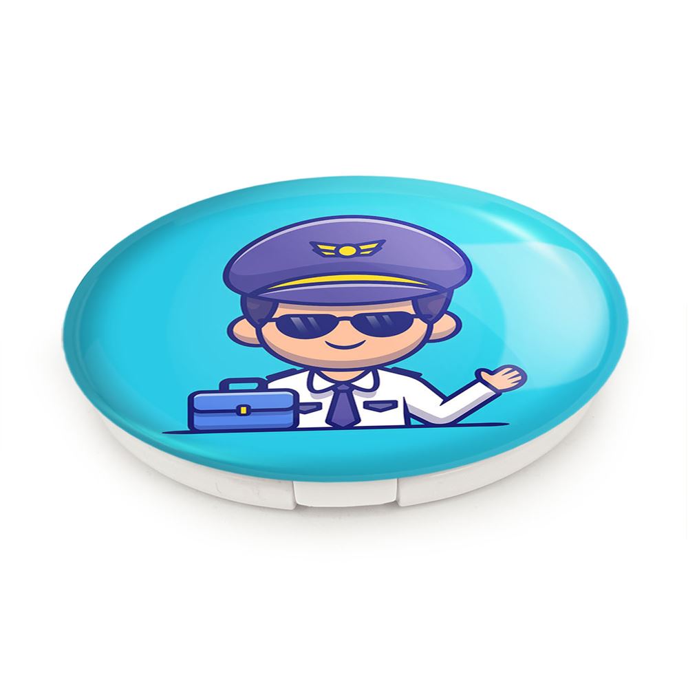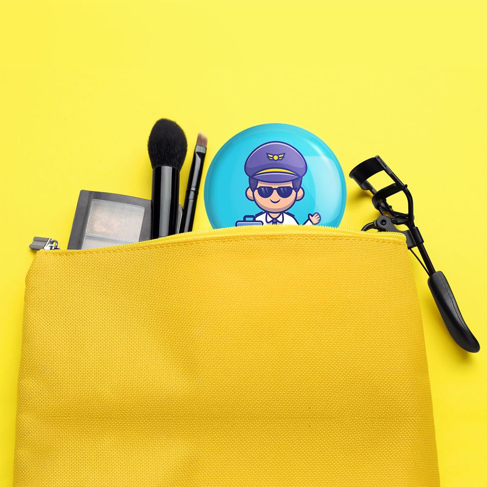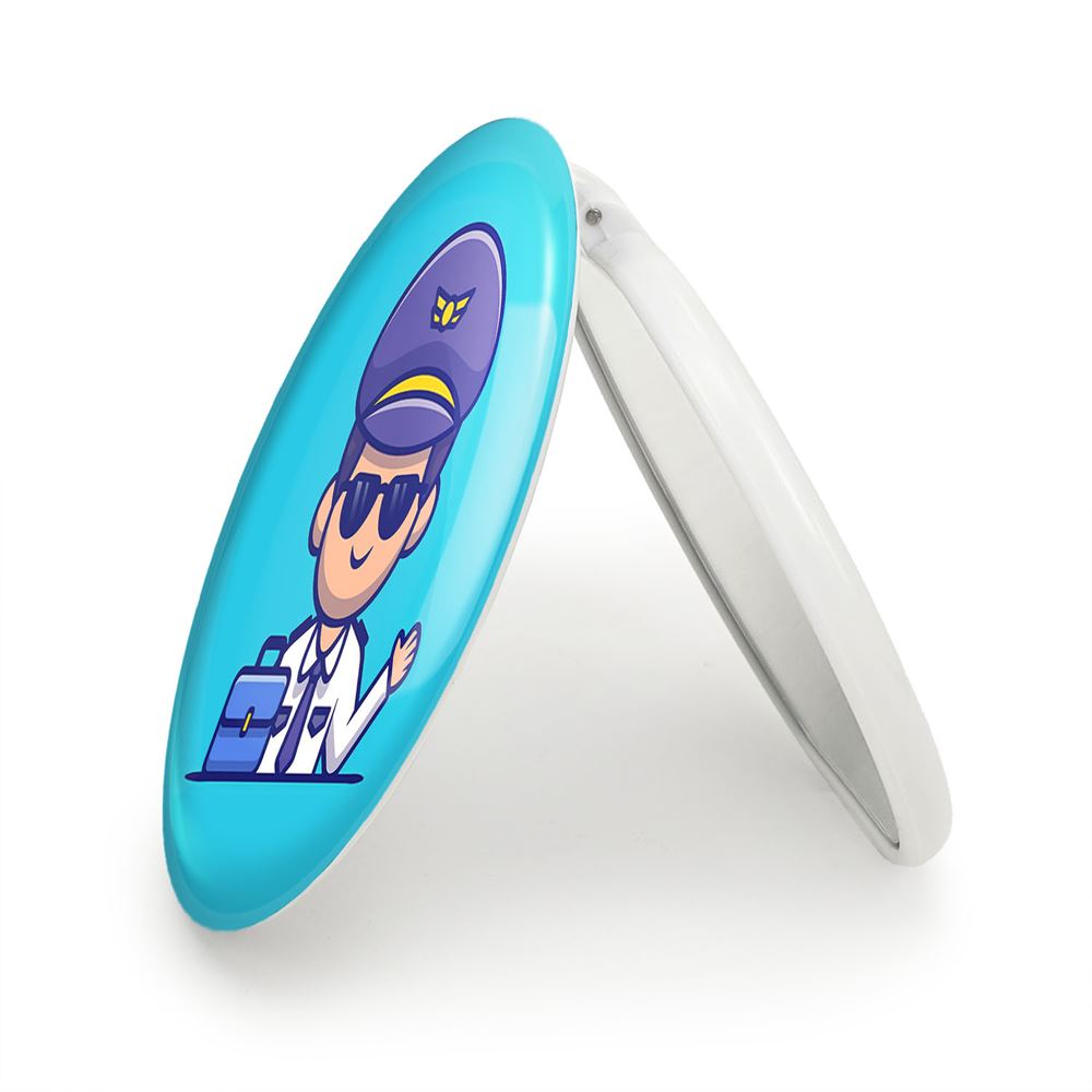 آینه های تاشو خلبان خندالو، از جنس پلاستیک فشرده ABS تولید شده و به رنگ سفید می باشد. یکی از آینه ها ابعاد واقعی را نشان داده و دیگری با قابلیت بزرگنمایی، جزئیات را بهتر نمایش می دهد. ابعاد هر یک از آینه ها، دایره ای به قطر 7.5 سانت می باشد که نه خیلی بزرگ و غیر قابل استفاده در کیف آرایشی ست و نه خیلی کوچک که تصویر خاصی در آن مشاهده نشود. آینه تاشو خلبان سایزی استاندارد و کارآمد دارد و در هر کیفی جا میگیرد. چاپ طرح بوسیله چاپگرهای دیجیتال شش رنگ با شفافیت و کیفیتی مثال زدنی بر روی یک وجه از بدنه ی آینه انجام گرفته و با روکش لمینت حرارتی پوشیده شده که در مقابل آسیب و خط و خش مقاوم بوده و کیفیت بالایی دارد. درب آینه بوسیله قفل بدنه ی آن، باز نمی ماند و کاملا بسته می شود و مناسب قرار گیری در کیف لوازم آرایش و کیف های کوچک دستی نیز هست. آینه های تاشو خلبان خندالو با تنوع طرحی بسیار بالا، سلیقه هر نوع مخاطبی را تامین میکند.