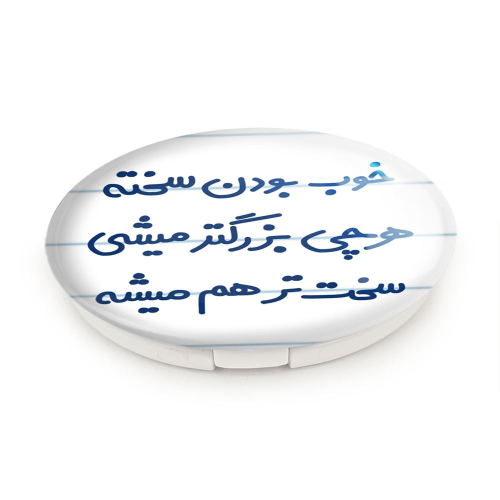 آینه های تاشو خوب بودن سخته هرچی بزرگتر میشی سخت تر هم میشه خندالو، از جنس پلاستیک فشرده ABS تولید شده و به رنگ سفید می باشد. یکی از آینه ها ابعاد واقعی را نشان داده و دیگری با قابلیت بزرگنمایی، جزئیات را بهتر نمایش می دهد. ابعاد هر یک از آینه ها، دایره ای به قطر 7.5 سانت می باشد که نه خیلی بزرگ و غیر قابل استفاده در کیف آرایشی ست و نه خیلی کوچک که تصویر خاصی در آن مشاهده نشود. آینه تاشو خوب بودن سخته هرچی بزرگتر میشی سخت تر هم میشه سایزی استاندارد و کارآمد دارد و در هر کیفی جا میگیرد. چاپ طرح بوسیله چاپگرهای دیجیتال شش رنگ با شفافیت و کیفیتی مثال زدنی بر روی یک وجه از بدنه ی آینه انجام گرفته و با روکش لمینت حرارتی پوشیده شده که در مقابل آسیب و خط و خش مقاوم بوده و کیفیت بالایی دارد. درب آینه بوسیله قفل بدنه ی آن، باز نمی ماند و کاملا بسته می شود و مناسب قرار گیری در کیف لوازم آرایش و کیف های کوچک دستی نیز هست. آینه های تاشو خوب بودن سخته هرچی بزرگتر میشی سخت تر هم میشه خندالو با تنوع طرحی بسیار بالا، سلیقه هر نوع مخاطبی را تامین میکند.