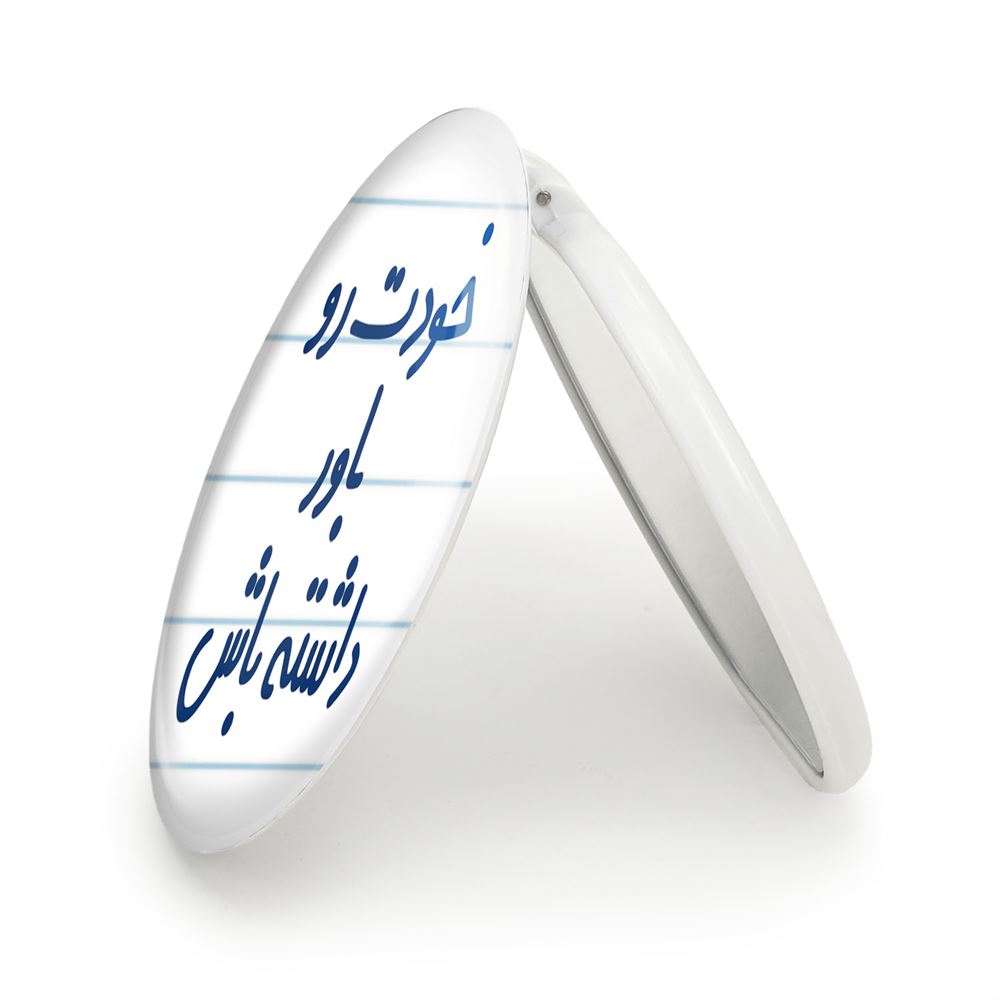 آینه های تاشو خودت رو باور داشته باش خندالو، از جنس پلاستیک فشرده ABS تولید شده و به رنگ سفید می باشد. یکی از آینه ها ابعاد واقعی را نشان داده و دیگری با قابلیت بزرگنمایی، جزئیات را بهتر نمایش می دهد. ابعاد هر یک از آینه ها، دایره ای به قطر 7.5 سانت می باشد که نه خیلی بزرگ و غیر قابل استفاده در کیف آرایشی ست و نه خیلی کوچک که تصویر خاصی در آن مشاهده نشود. آینه تاشو خودت رو باور داشته باش سایزی استاندارد و کارآمد دارد و در هر کیفی جا میگیرد. چاپ طرح بوسیله چاپگرهای دیجیتال شش رنگ با شفافیت و کیفیتی مثال زدنی بر روی یک وجه از بدنه ی آینه انجام گرفته و با روکش لمینت حرارتی پوشیده شده که در مقابل آسیب و خط و خش مقاوم بوده و کیفیت بالایی دارد. درب آینه بوسیله قفل بدنه ی آن، باز نمی ماند و کاملا بسته می شود و مناسب قرار گیری در کیف لوازم آرایش و کیف های کوچک دستی نیز هست. آینه های تاشو خودت رو باور داشته باش خندالو با تنوع طرحی بسیار بالا، سلیقه هر نوع مخاطبی را تامین میکند.