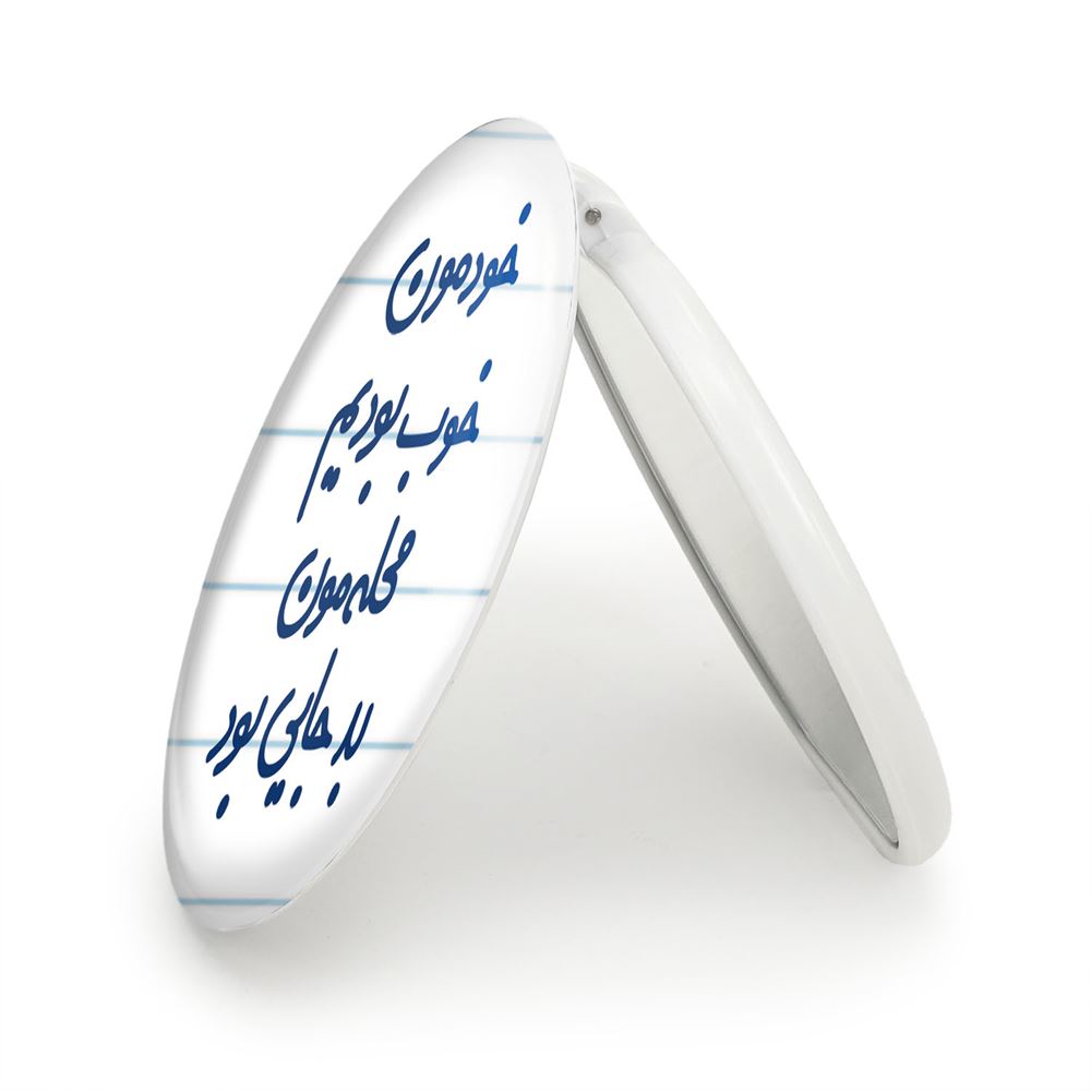 آینه های تاشو خودمون خوب بودیم محله مون بدجایی بود خندالو، از جنس پلاستیک فشرده ABS تولید شده و به رنگ سفید می باشد. یکی از آینه ها ابعاد واقعی را نشان داده و دیگری با قابلیت بزرگنمایی، جزئیات را بهتر نمایش می دهد. ابعاد هر یک از آینه ها، دایره ای به قطر 7.5 سانت می باشد که نه خیلی بزرگ و غیر قابل استفاده در کیف آرایشی ست و نه خیلی کوچک که تصویر خاصی در آن مشاهده نشود. آینه تاشو خودمون خوب بودیم محله مون بدجایی بود سایزی استاندارد و کارآمد دارد و در هر کیفی جا میگیرد. چاپ طرح بوسیله چاپگرهای دیجیتال شش رنگ با شفافیت و کیفیتی مثال زدنی بر روی یک وجه از بدنه ی آینه انجام گرفته و با روکش لمینت حرارتی پوشیده شده که در مقابل آسیب و خط و خش مقاوم بوده و کیفیت بالایی دارد. درب آینه بوسیله قفل بدنه ی آن، باز نمی ماند و کاملا بسته می شود و مناسب قرار گیری در کیف لوازم آرایش و کیف های کوچک دستی نیز هست. آینه های تاشو خودمون خوب بودیم محله مون بدجایی بود خندالو با تنوع طرحی بسیار بالا، سلیقه هر نوع مخاطبی را تامین میکند.