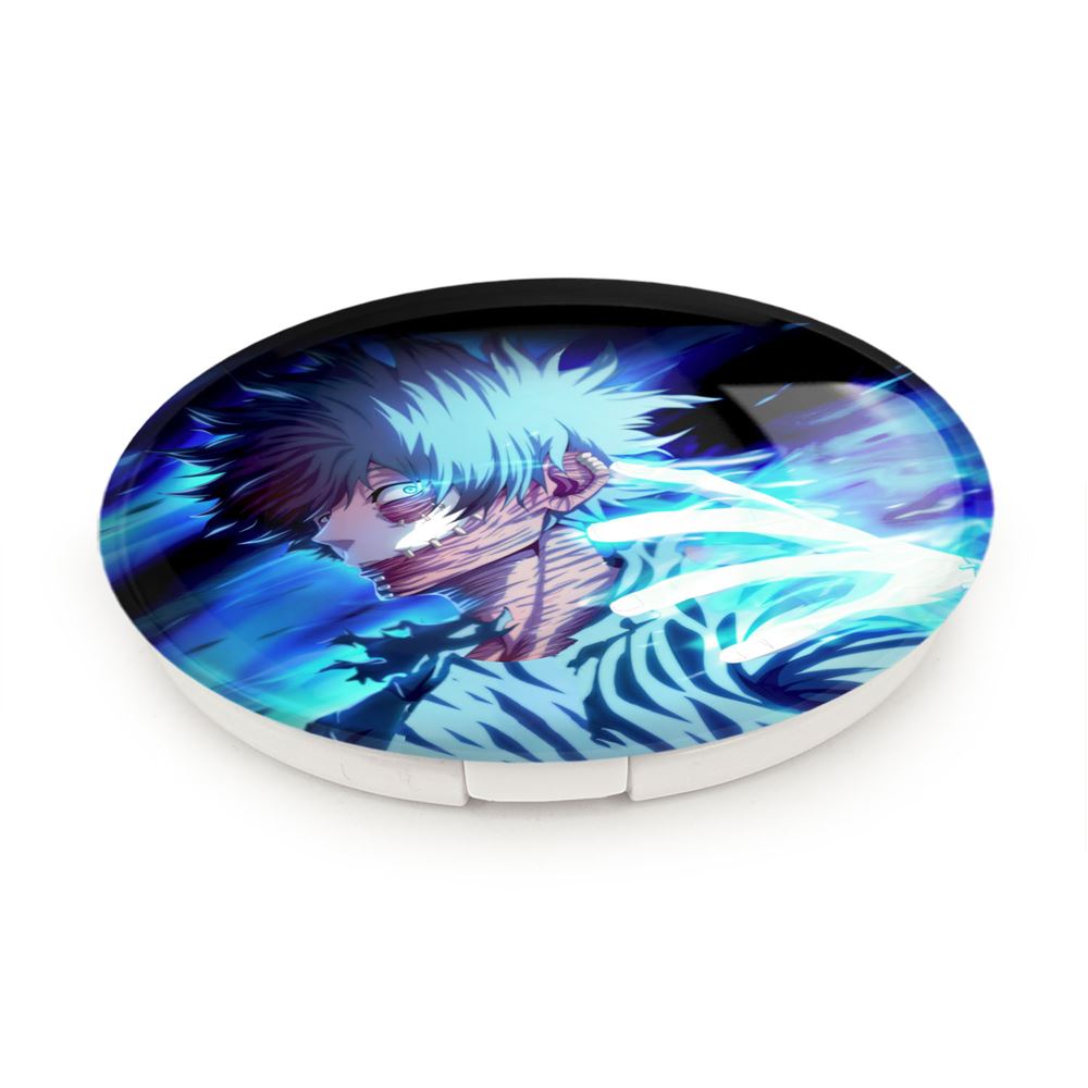 آینه های تاشو دابی انیمه آکادمی قهرمان من خندالو، از جنس پلاستیک فشرده ABS تولید شده و به رنگ سفید می باشد. یکی از آینه ها ابعاد واقعی را نشان داده و دیگری با قابلیت بزرگنمایی، جزئیات را بهتر نمایش می دهد. ابعاد هر یک از آینه ها، دایره ای به قطر 7.5 سانت می باشد که نه خیلی بزرگ و غیر قابل استفاده در کیف آرایشی ست و نه خیلی کوچک که تصویر خاصی در آن مشاهده نشود. آینه تاشو دابی انیمه آکادمی قهرمان من سایزی استاندارد و کارآمد دارد و در هر کیفی جا میگیرد. چاپ طرح بوسیله چاپگرهای دیجیتال شش رنگ با شفافیت و کیفیتی مثال زدنی بر روی یک وجه از بدنه ی آینه انجام گرفته و با روکش لمینت حرارتی پوشیده شده که در مقابل آسیب و خط و خش مقاوم بوده و کیفیت بالایی دارد. درب آینه بوسیله قفل بدنه ی آن، باز نمی ماند و کاملا بسته می شود و مناسب قرار گیری در کیف لوازم آرایش و کیف های کوچک دستی نیز هست. آینه های تاشو دابی انیمه آکادمی قهرمان من خندالو با تنوع طرحی بسیار بالا، سلیقه هر نوع مخاطبی را تامین میکند.