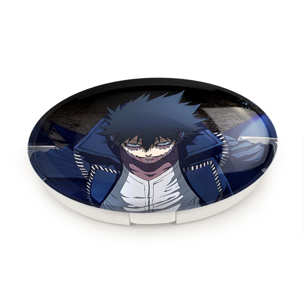 آینه های تاشو دابی انیمه آکادمی قهرمان من خندالو، از جنس پلاستیک فشرده ABS تولید شده و به رنگ سفید می باشد. یکی از آینه ها ابعاد واقعی را نشان داده و دیگری با قابلیت بزرگنمایی، جزئیات را بهتر نمایش می دهد. ابعاد هر یک از آینه ها، دایره ای به قطر 7.5 سانت می باشد که نه خیلی بزرگ و غیر قابل استفاده در کیف آرایشی ست و نه خیلی کوچک که تصویر خاصی در آن مشاهده نشود. آینه تاشو دابی انیمه آکادمی قهرمان من سایزی استاندارد و کارآمد دارد و در هر کیفی جا میگیرد. چاپ طرح بوسیله چاپگرهای دیجیتال شش رنگ با شفافیت و کیفیتی مثال زدنی بر روی یک وجه از بدنه ی آینه انجام گرفته و با روکش لمینت حرارتی پوشیده شده که در مقابل آسیب و خط و خش مقاوم بوده و کیفیت بالایی دارد. درب آینه بوسیله قفل بدنه ی آن، باز نمی ماند و کاملا بسته می شود و مناسب قرار گیری در کیف لوازم آرایش و کیف های کوچک دستی نیز هست. آینه های تاشو دابی انیمه آکادمی قهرمان من خندالو با تنوع طرحی بسیار بالا، سلیقه هر نوع مخاطبی را تامین میکند.