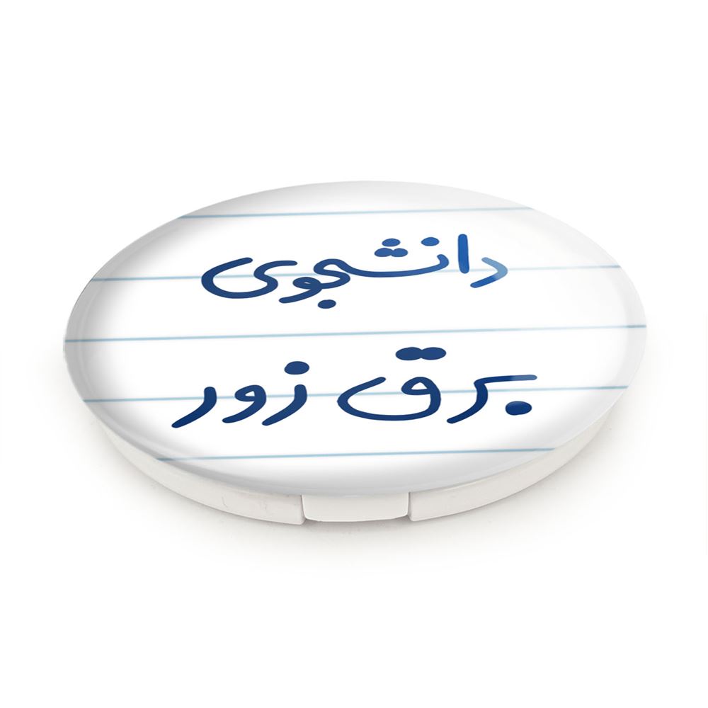 آینه های تاشو دانشجوی برق زور خندالو، از جنس پلاستیک فشرده ABS تولید شده و به رنگ سفید می باشد. یکی از آینه ها ابعاد واقعی را نشان داده و دیگری با قابلیت بزرگنمایی، جزئیات را بهتر نمایش می دهد. ابعاد هر یک از آینه ها، دایره ای به قطر 7.5 سانت می باشد که نه خیلی بزرگ و غیر قابل استفاده در کیف آرایشی ست و نه خیلی کوچک که تصویر خاصی در آن مشاهده نشود. آینه تاشو دانشجوی برق زور سایزی استاندارد و کارآمد دارد و در هر کیفی جا میگیرد. چاپ طرح بوسیله چاپگرهای دیجیتال شش رنگ با شفافیت و کیفیتی مثال زدنی بر روی یک وجه از بدنه ی آینه انجام گرفته و با روکش لمینت حرارتی پوشیده شده که در مقابل آسیب و خط و خش مقاوم بوده و کیفیت بالایی دارد. درب آینه بوسیله قفل بدنه ی آن، باز نمی ماند و کاملا بسته می شود و مناسب قرار گیری در کیف لوازم آرایش و کیف های کوچک دستی نیز هست. آینه های تاشو دانشجوی برق زور خندالو با تنوع طرحی بسیار بالا، سلیقه هر نوع مخاطبی را تامین میکند.
