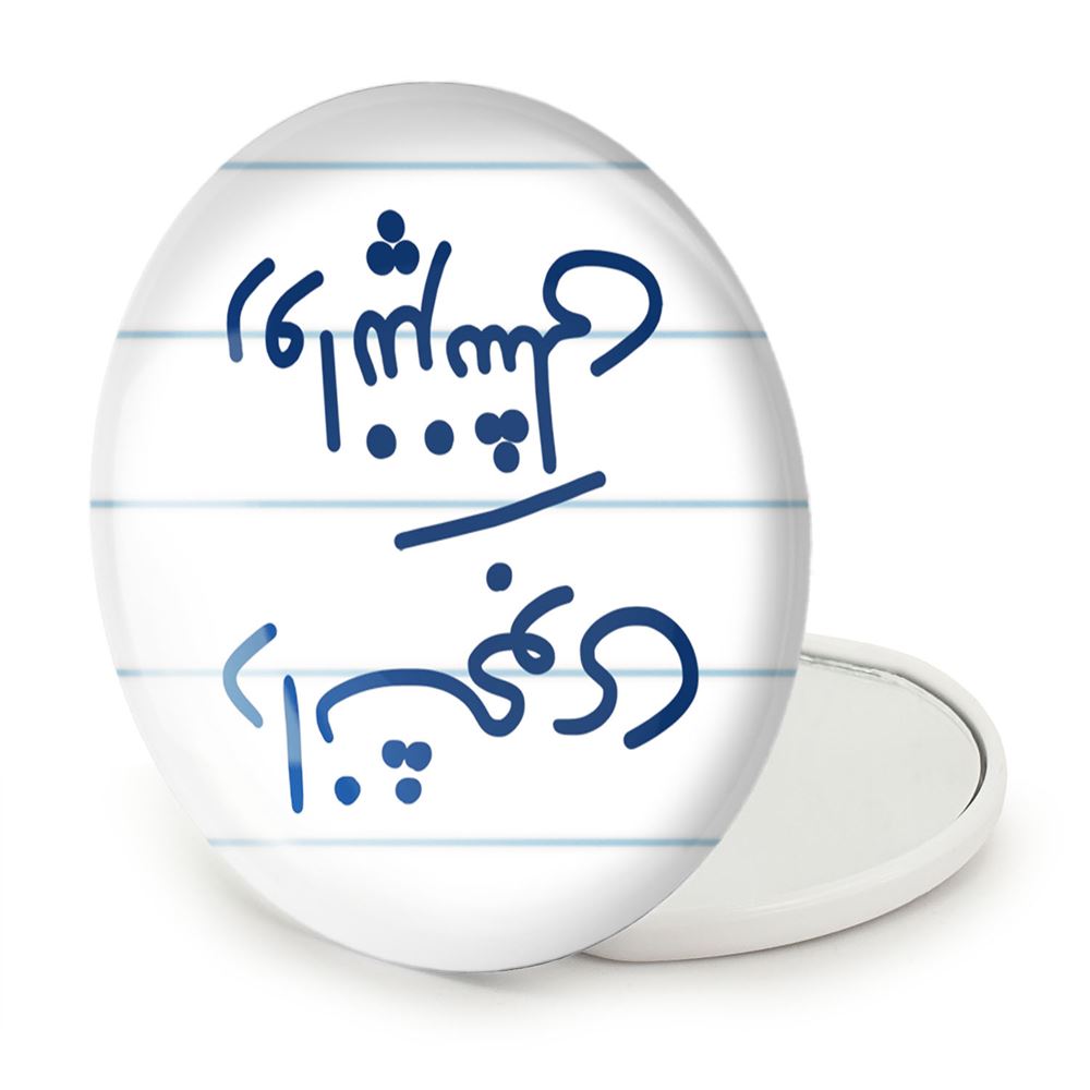 آینه های تاشو دانشجوی روانپزشکی خندالو، از جنس پلاستیک فشرده ABS تولید شده و به رنگ سفید می باشد. یکی از آینه ها ابعاد واقعی را نشان داده و دیگری با قابلیت بزرگنمایی، جزئیات را بهتر نمایش می دهد. ابعاد هر یک از آینه ها، دایره ای به قطر 7.5 سانت می باشد که نه خیلی بزرگ و غیر قابل استفاده در کیف آرایشی ست و نه خیلی کوچک که تصویر خاصی در آن مشاهده نشود. آینه تاشو دانشجوی روانپزشکی سایزی استاندارد و کارآمد دارد و در هر کیفی جا میگیرد. چاپ طرح بوسیله چاپگرهای دیجیتال شش رنگ با شفافیت و کیفیتی مثال زدنی بر روی یک وجه از بدنه ی آینه انجام گرفته و با روکش لمینت حرارتی پوشیده شده که در مقابل آسیب و خط و خش مقاوم بوده و کیفیت بالایی دارد. درب آینه بوسیله قفل بدنه ی آن، باز نمی ماند و کاملا بسته می شود و مناسب قرار گیری در کیف لوازم آرایش و کیف های کوچک دستی نیز هست. آینه های تاشو دانشجوی روانپزشکی خندالو با تنوع طرحی بسیار بالا، سلیقه هر نوع مخاطبی را تامین میکند.