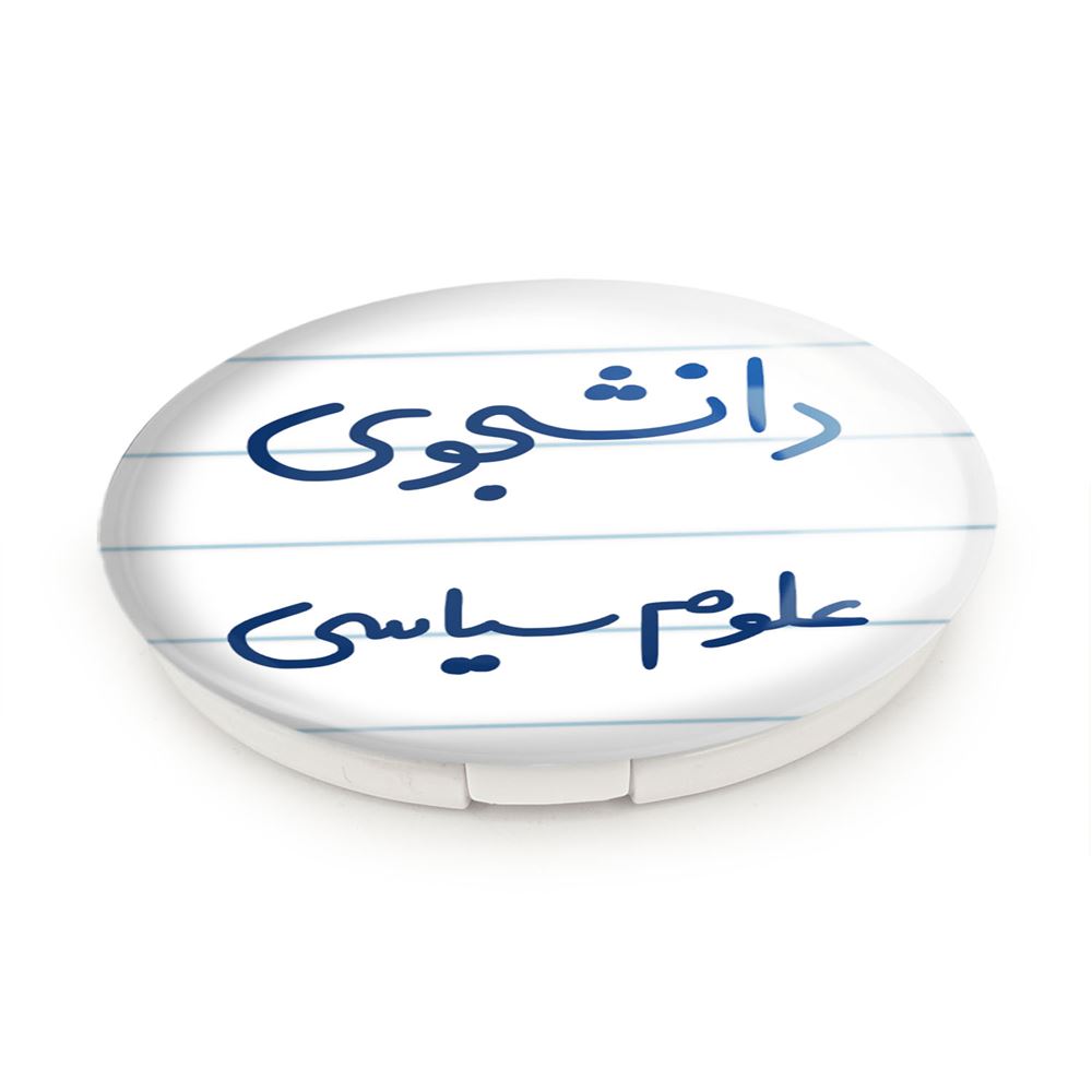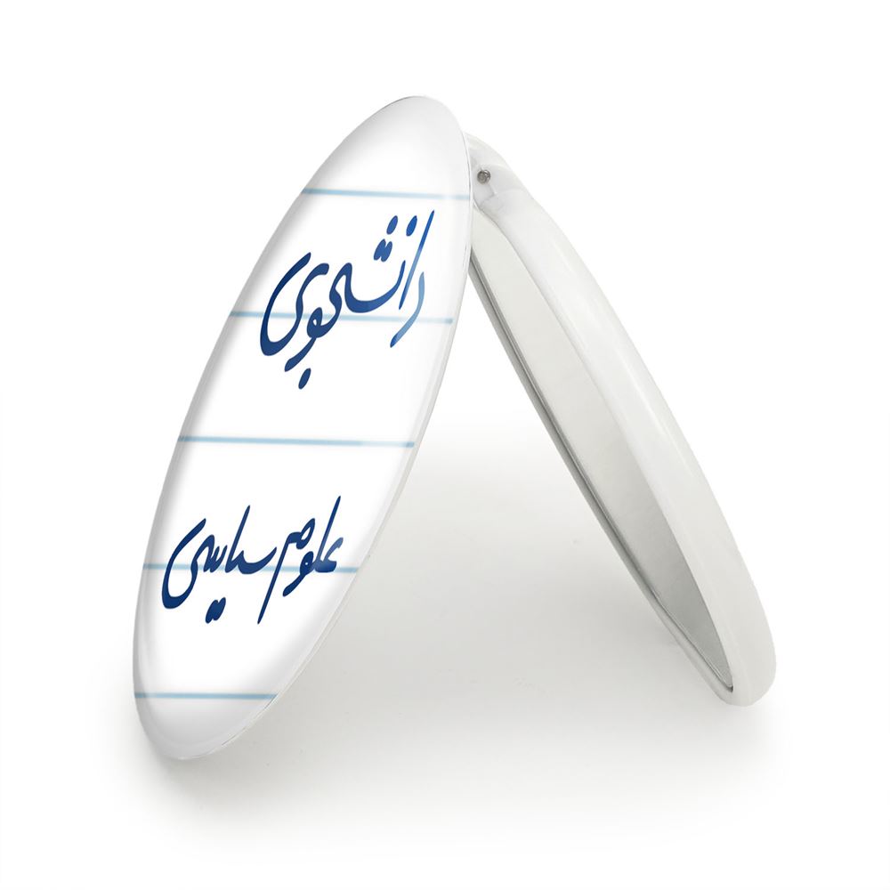 آینه های تاشو دانشجوی علوم سیاسی خندالو، از جنس پلاستیک فشرده ABS تولید شده و به رنگ سفید می باشد. یکی از آینه ها ابعاد واقعی را نشان داده و دیگری با قابلیت بزرگنمایی، جزئیات را بهتر نمایش می دهد. ابعاد هر یک از آینه ها، دایره ای به قطر 7.5 سانت می باشد که نه خیلی بزرگ و غیر قابل استفاده در کیف آرایشی ست و نه خیلی کوچک که تصویر خاصی در آن مشاهده نشود. آینه تاشو دانشجوی علوم سیاسی سایزی استاندارد و کارآمد دارد و در هر کیفی جا میگیرد. چاپ طرح بوسیله چاپگرهای دیجیتال شش رنگ با شفافیت و کیفیتی مثال زدنی بر روی یک وجه از بدنه ی آینه انجام گرفته و با روکش لمینت حرارتی پوشیده شده که در مقابل آسیب و خط و خش مقاوم بوده و کیفیت بالایی دارد. درب آینه بوسیله قفل بدنه ی آن، باز نمی ماند و کاملا بسته می شود و مناسب قرار گیری در کیف لوازم آرایش و کیف های کوچک دستی نیز هست. آینه های تاشو دانشجوی علوم سیاسی خندالو با تنوع طرحی بسیار بالا، سلیقه هر نوع مخاطبی را تامین میکند.