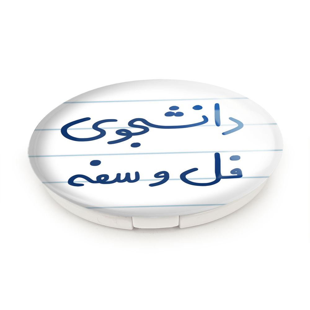 آینه های تاشو دانشجوی فل و سفه خندالو، از جنس پلاستیک فشرده ABS تولید شده و به رنگ سفید می باشد. یکی از آینه ها ابعاد واقعی را نشان داده و دیگری با قابلیت بزرگنمایی، جزئیات را بهتر نمایش می دهد. ابعاد هر یک از آینه ها، دایره ای به قطر 7.5 سانت می باشد که نه خیلی بزرگ و غیر قابل استفاده در کیف آرایشی ست و نه خیلی کوچک که تصویر خاصی در آن مشاهده نشود. آینه تاشو دانشجوی فل و سفه سایزی استاندارد و کارآمد دارد و در هر کیفی جا میگیرد. چاپ طرح بوسیله چاپگرهای دیجیتال شش رنگ با شفافیت و کیفیتی مثال زدنی بر روی یک وجه از بدنه ی آینه انجام گرفته و با روکش لمینت حرارتی پوشیده شده که در مقابل آسیب و خط و خش مقاوم بوده و کیفیت بالایی دارد. درب آینه بوسیله قفل بدنه ی آن، باز نمی ماند و کاملا بسته می شود و مناسب قرار گیری در کیف لوازم آرایش و کیف های کوچک دستی نیز هست. آینه های تاشو دانشجوی فل و سفه خندالو با تنوع طرحی بسیار بالا، سلیقه هر نوع مخاطبی را تامین میکند.