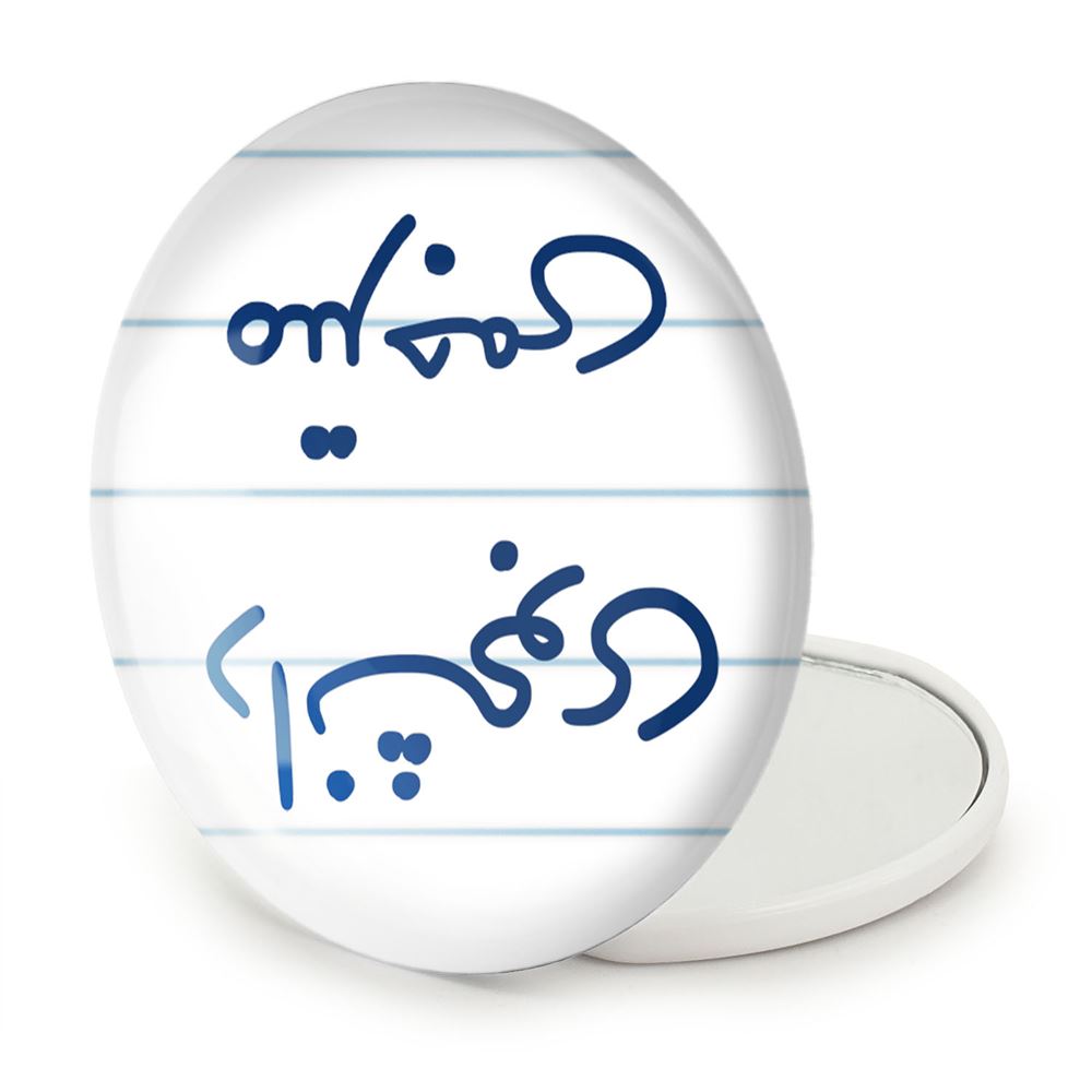آینه های تاشو دانشجوی مترجمی خندالو، از جنس پلاستیک فشرده ABS تولید شده و به رنگ سفید می باشد. یکی از آینه ها ابعاد واقعی را نشان داده و دیگری با قابلیت بزرگنمایی، جزئیات را بهتر نمایش می دهد. ابعاد هر یک از آینه ها، دایره ای به قطر 7.5 سانت می باشد که نه خیلی بزرگ و غیر قابل استفاده در کیف آرایشی ست و نه خیلی کوچک که تصویر خاصی در آن مشاهده نشود. آینه تاشو دانشجوی مترجمی سایزی استاندارد و کارآمد دارد و در هر کیفی جا میگیرد. چاپ طرح بوسیله چاپگرهای دیجیتال شش رنگ با شفافیت و کیفیتی مثال زدنی بر روی یک وجه از بدنه ی آینه انجام گرفته و با روکش لمینت حرارتی پوشیده شده که در مقابل آسیب و خط و خش مقاوم بوده و کیفیت بالایی دارد. درب آینه بوسیله قفل بدنه ی آن، باز نمی ماند و کاملا بسته می شود و مناسب قرار گیری در کیف لوازم آرایش و کیف های کوچک دستی نیز هست. آینه های تاشو دانشجوی مترجمی خندالو با تنوع طرحی بسیار بالا، سلیقه هر نوع مخاطبی را تامین میکند.