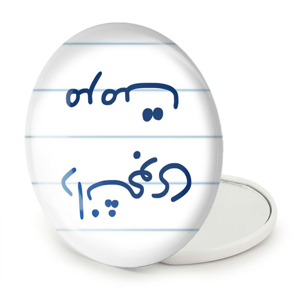آینه های تاشو دانشجوی مرمت خندالو، از جنس پلاستیک فشرده ABS تولید شده و به رنگ سفید می باشد. یکی از آینه ها ابعاد واقعی را نشان داده و دیگری با قابلیت بزرگنمایی، جزئیات را بهتر نمایش می دهد. ابعاد هر یک از آینه ها، دایره ای به قطر 7.5 سانت می باشد که نه خیلی بزرگ و غیر قابل استفاده در کیف آرایشی ست و نه خیلی کوچک که تصویر خاصی در آن مشاهده نشود. آینه تاشو دانشجوی مرمت سایزی استاندارد و کارآمد دارد و در هر کیفی جا میگیرد. چاپ طرح بوسیله چاپگرهای دیجیتال شش رنگ با شفافیت و کیفیتی مثال زدنی بر روی یک وجه از بدنه ی آینه انجام گرفته و با روکش لمینت حرارتی پوشیده شده که در مقابل آسیب و خط و خش مقاوم بوده و کیفیت بالایی دارد. درب آینه بوسیله قفل بدنه ی آن، باز نمی ماند و کاملا بسته می شود و مناسب قرار گیری در کیف لوازم آرایش و کیف های کوچک دستی نیز هست. آینه های تاشو دانشجوی مرمت خندالو با تنوع طرحی بسیار بالا، سلیقه هر نوع مخاطبی را تامین میکند.