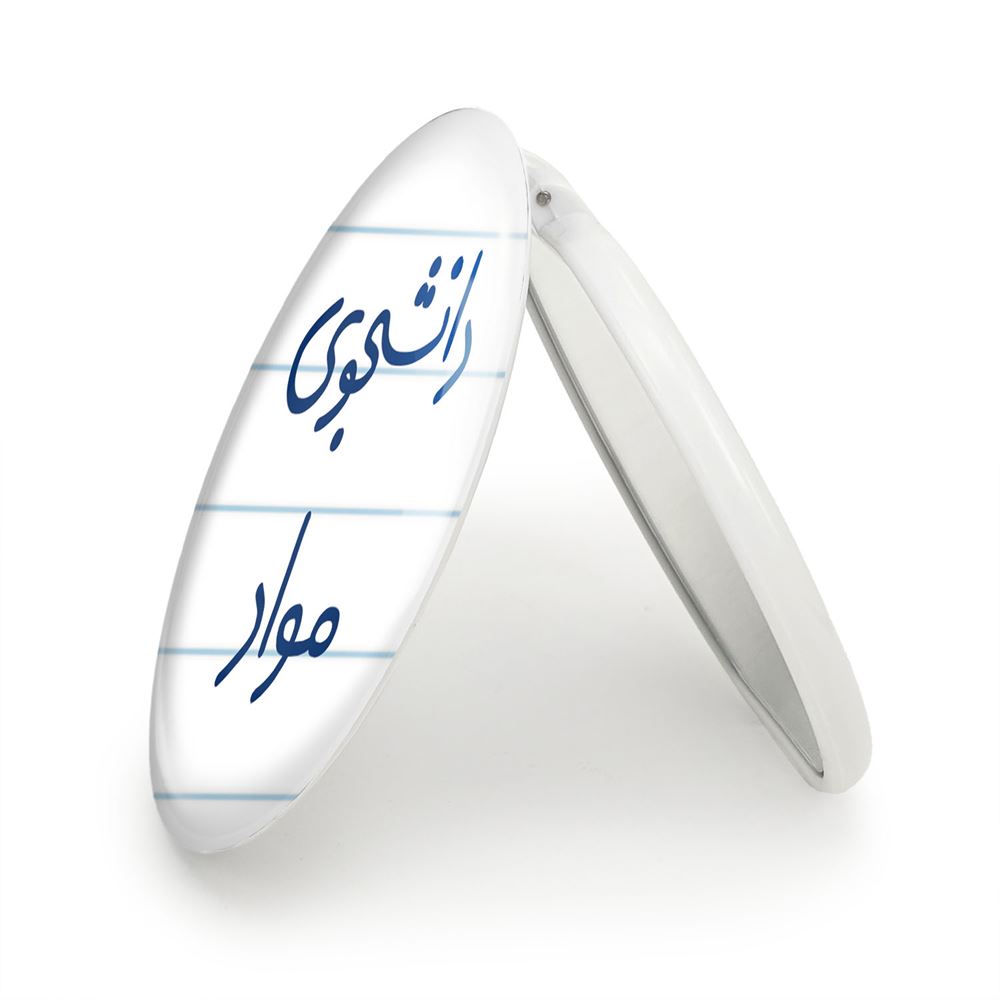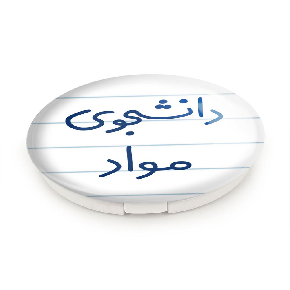 آینه های تاشو دانشجوی مواد خندالو، از جنس پلاستیک فشرده ABS تولید شده و به رنگ سفید می باشد. یکی از آینه ها ابعاد واقعی را نشان داده و دیگری با قابلیت بزرگنمایی، جزئیات را بهتر نمایش می دهد. ابعاد هر یک از آینه ها، دایره ای به قطر 7.5 سانت می باشد که نه خیلی بزرگ و غیر قابل استفاده در کیف آرایشی ست و نه خیلی کوچک که تصویر خاصی در آن مشاهده نشود. آینه تاشو دانشجوی مواد سایزی استاندارد و کارآمد دارد و در هر کیفی جا میگیرد. چاپ طرح بوسیله چاپگرهای دیجیتال شش رنگ با شفافیت و کیفیتی مثال زدنی بر روی یک وجه از بدنه ی آینه انجام گرفته و با روکش لمینت حرارتی پوشیده شده که در مقابل آسیب و خط و خش مقاوم بوده و کیفیت بالایی دارد. درب آینه بوسیله قفل بدنه ی آن، باز نمی ماند و کاملا بسته می شود و مناسب قرار گیری در کیف لوازم آرایش و کیف های کوچک دستی نیز هست. آینه های تاشو دانشجوی مواد خندالو با تنوع طرحی بسیار بالا، سلیقه هر نوع مخاطبی را تامین میکند.