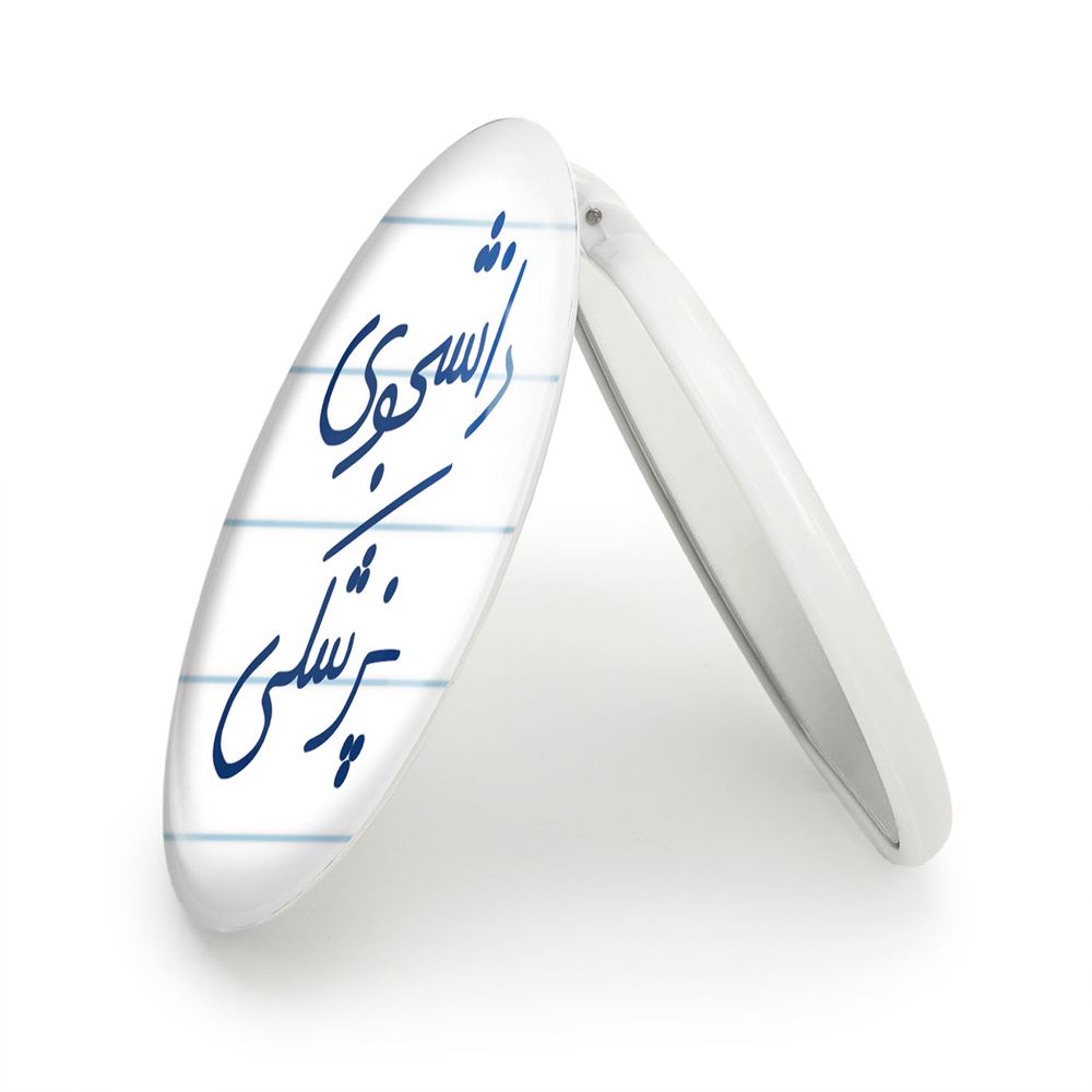 آینه های تاشو دانشجوی پزشکی خندالو، از جنس پلاستیک فشرده ABS تولید شده و به رنگ سفید می باشد. یکی از آینه ها ابعاد واقعی را نشان داده و دیگری با قابلیت بزرگنمایی، جزئیات را بهتر نمایش می دهد. ابعاد هر یک از آینه ها، دایره ای به قطر 7.5 سانت می باشد که نه خیلی بزرگ و غیر قابل استفاده در کیف آرایشی ست و نه خیلی کوچک که تصویر خاصی در آن مشاهده نشود. آینه تاشو دانشجوی پزشکی سایزی استاندارد و کارآمد دارد و در هر کیفی جا میگیرد. چاپ طرح بوسیله چاپگرهای دیجیتال شش رنگ با شفافیت و کیفیتی مثال زدنی بر روی یک وجه از بدنه ی آینه انجام گرفته و با روکش لمینت حرارتی پوشیده شده که در مقابل آسیب و خط و خش مقاوم بوده و کیفیت بالایی دارد. درب آینه بوسیله قفل بدنه ی آن، باز نمی ماند و کاملا بسته می شود و مناسب قرار گیری در کیف لوازم آرایش و کیف های کوچک دستی نیز هست. آینه های تاشو دانشجوی پزشکی خندالو با تنوع طرحی بسیار بالا، سلیقه هر نوع مخاطبی را تامین میکند.