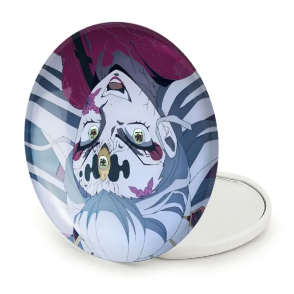 آینه های تاشو داکی انیمه شیطان کش خندالو، از جنس پلاستیک فشرده ABS تولید شده و به رنگ سفید می باشد. یکی از آینه ها ابعاد واقعی را نشان داده و دیگری با قابلیت بزرگنمایی، جزئیات را بهتر نمایش می دهد. ابعاد هر یک از آینه ها، دایره ای به قطر 7.5 سانت می باشد که نه خیلی بزرگ و غیر قابل استفاده در کیف آرایشی ست و نه خیلی کوچک که تصویر خاصی در آن مشاهده نشود. آینه تاشو داکی انیمه شیطان کش سایزی استاندارد و کارآمد دارد و در هر کیفی جا میگیرد. چاپ طرح بوسیله چاپگرهای دیجیتال شش رنگ با شفافیت و کیفیتی مثال زدنی بر روی یک وجه از بدنه ی آینه انجام گرفته و با روکش لمینت حرارتی پوشیده شده که در مقابل آسیب و خط و خش مقاوم بوده و کیفیت بالایی دارد. درب آینه بوسیله قفل بدنه ی آن، باز نمی ماند و کاملا بسته می شود و مناسب قرار گیری در کیف لوازم آرایش و کیف های کوچک دستی نیز هست. آینه های تاشو داکی انیمه شیطان کش خندالو با تنوع طرحی بسیار بالا، سلیقه هر نوع مخاطبی را تامین میکند.