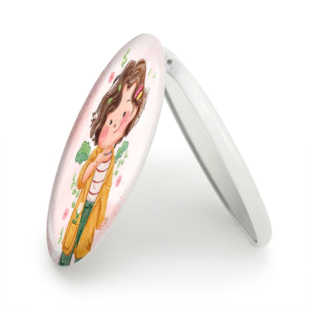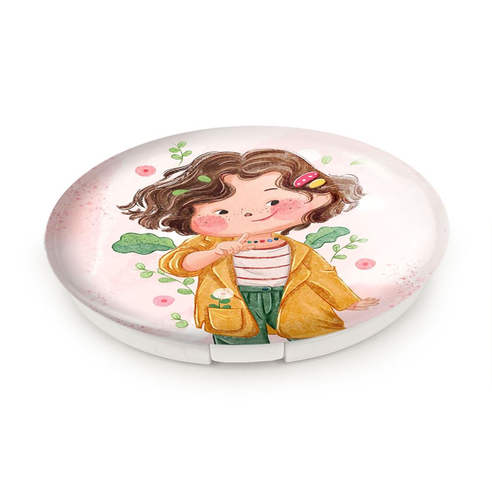 آینه های تاشو دخترانه فانتزی خندالو، از جنس پلاستیک فشرده ABS تولید شده و به رنگ سفید می باشد. یکی از آینه ها ابعاد واقعی را نشان داده و دیگری با قابلیت بزرگنمایی، جزئیات را بهتر نمایش می دهد.