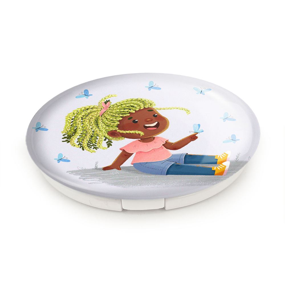 آینه های تاشو دخترانه فانتزی خندالو، از جنس پلاستیک فشرده ABS تولید شده و به رنگ سفید می باشد. یکی از آینه ها ابعاد واقعی را نشان داده و دیگری با قابلیت بزرگنمایی، جزئیات را بهتر نمایش می دهد.