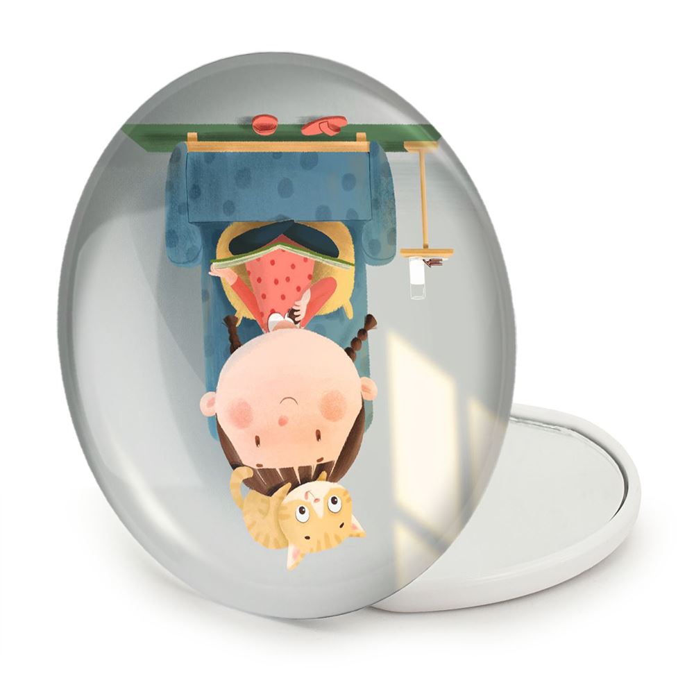 آینه های تاشو دخترانه فانتزی خندالو، از جنس پلاستیک فشرده ABS تولید شده و به رنگ سفید می باشد. یکی از آینه ها ابعاد واقعی را نشان داده و دیگری با قابلیت بزرگنمایی، جزئیات را بهتر نمایش می دهد.