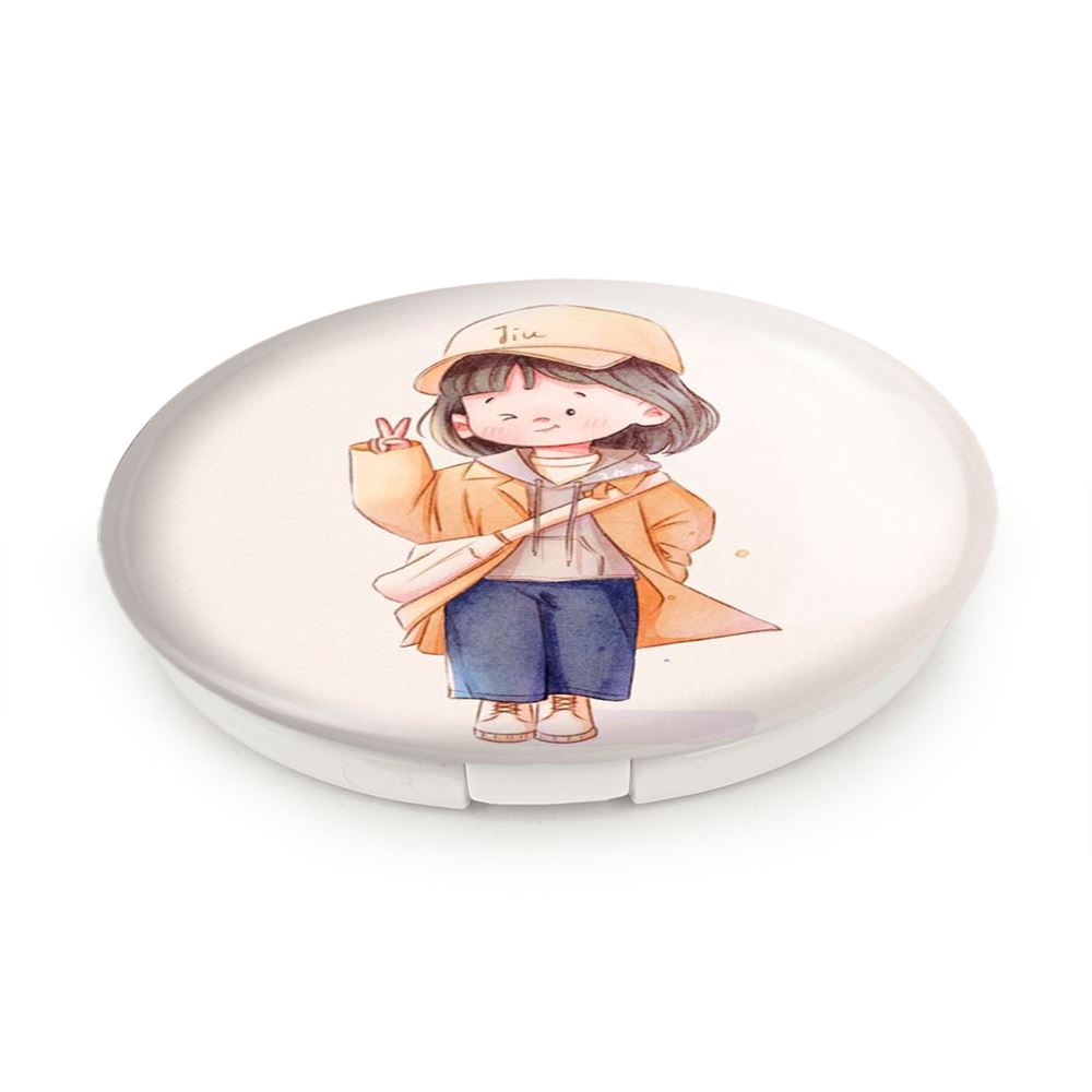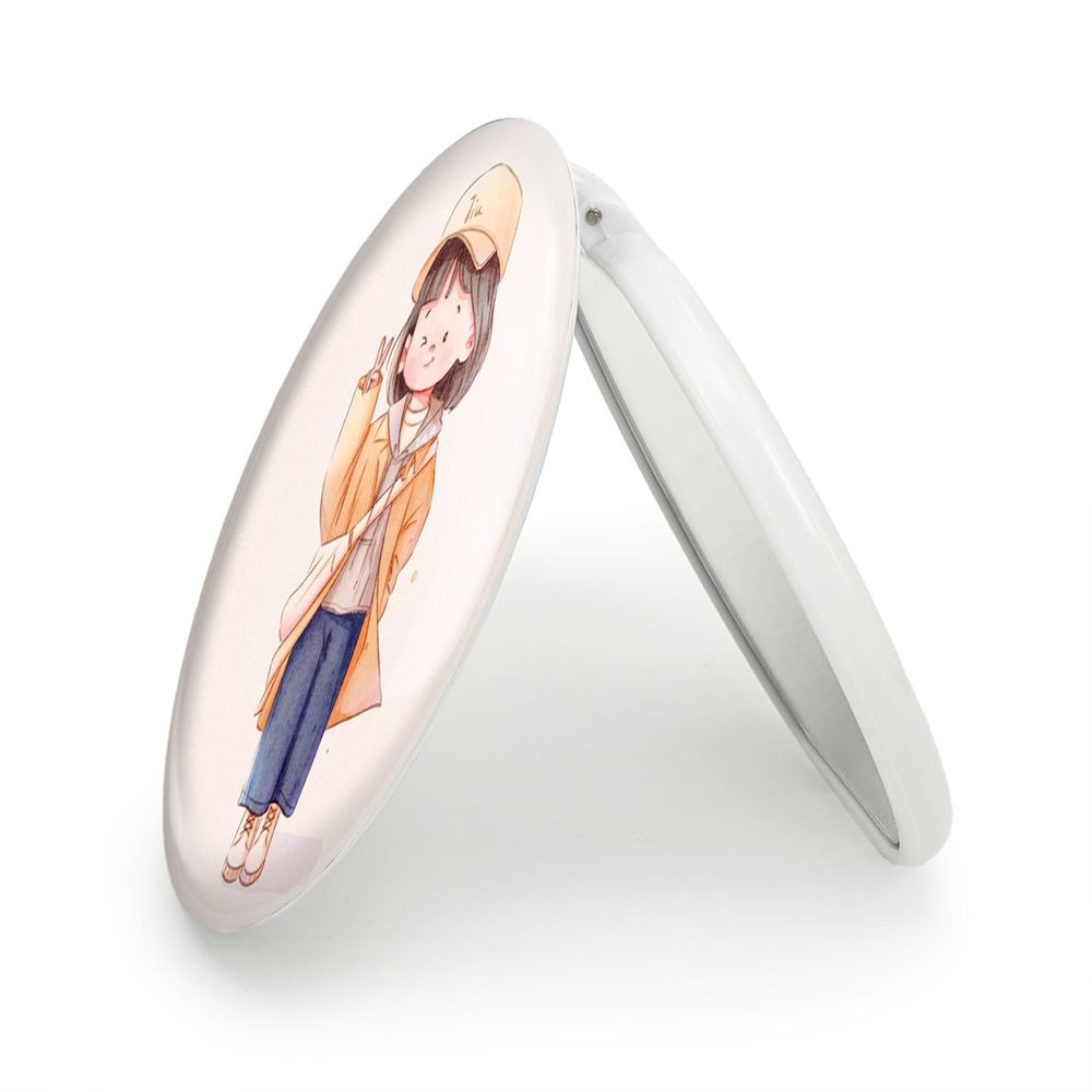 آینه های تاشو دخترانه کودکانه خندالو، از جنس پلاستیک فشرده ABS تولید شده و به رنگ سفید می باشد. یکی از آینه ها ابعاد واقعی را نشان داده و دیگری با قابلیت بزرگنمایی، جزئیات را بهتر نمایش می دهد. ابعاد هر یک از آینه ها، دایره ای به قطر 7.5 سانت می باشد که نه خیلی بزرگ و غیر قابل استفاده در کیف آرایشی ست و نه خیلی کوچک که تصویر خاصی در آن مشاهده نشود. آینه تاشو دخترانه کودکانه سایزی استاندارد و کارآمد دارد و در هر کیفی جا میگیرد. چاپ طرح بوسیله چاپگرهای دیجیتال شش رنگ با شفافیت و کیفیتی مثال زدنی بر روی یک وجه از بدنه ی آینه انجام گرفته و با روکش لمینت حرارتی پوشیده شده که در مقابل آسیب و خط و خش مقاوم بوده و کیفیت بالایی دارد. درب آینه بوسیله قفل بدنه ی آن، باز نمی ماند و کاملا بسته می شود و مناسب قرار گیری در کیف لوازم آرایش و کیف های کوچک دستی نیز هست. آینه های تاشو دخترانه کودکانه خندالو با تنوع طرحی بسیار بالا، سلیقه هر نوع مخاطبی را تامین میکند.