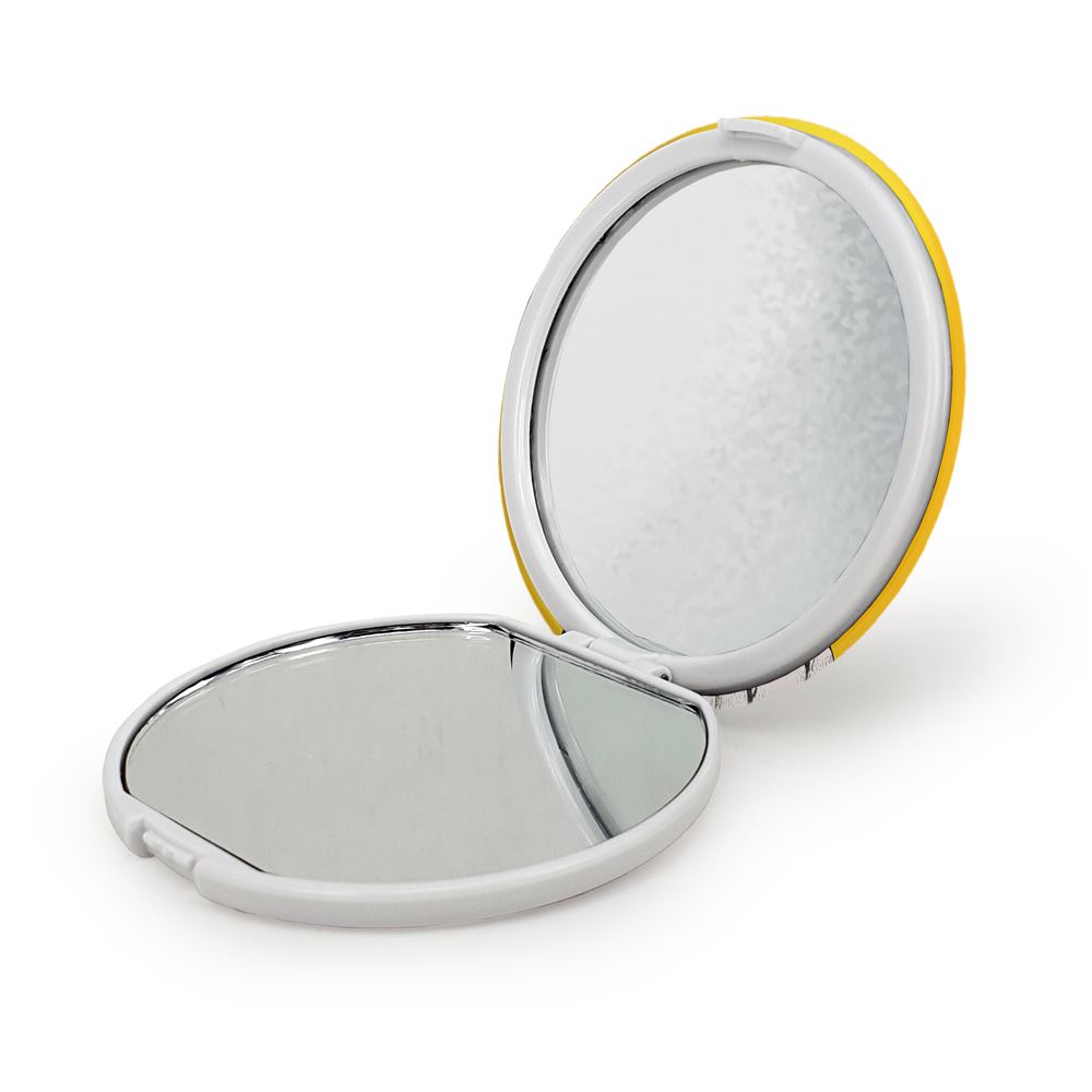 آینه های تاشو دخترانه خندالو، از جنس پلاستیک فشرده ABS تولید شده و به رنگ سفید می باشد. یکی از آینه ها ابعاد واقعی را نشان داده و دیگری با قابلیت بزرگنمایی، جزئیات را بهتر نمایش می دهد.