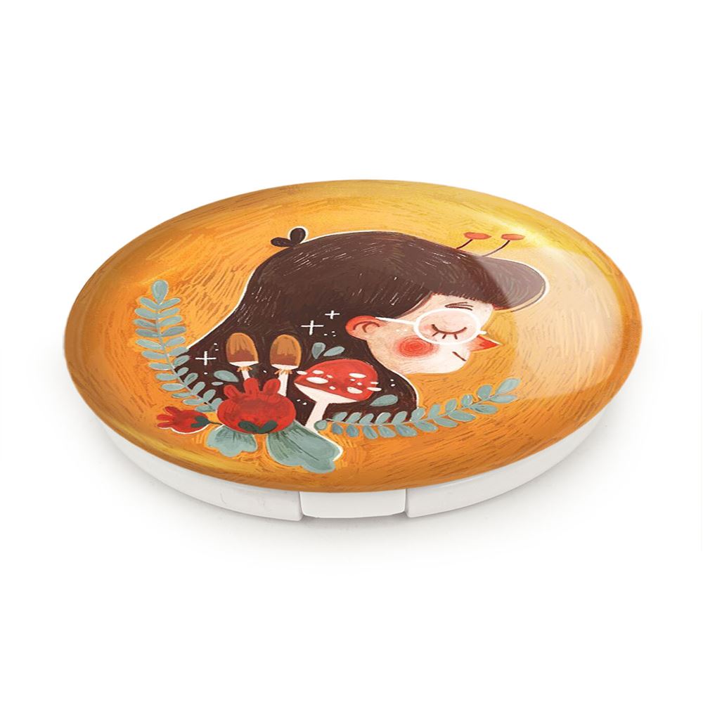 آینه های تاشو دخترانه خندالو، از جنس پلاستیک فشرده ABS تولید شده و به رنگ سفید می باشد. یکی از آینه ها ابعاد واقعی را نشان داده و دیگری با قابلیت بزرگنمایی، جزئیات را بهتر نمایش می دهد.