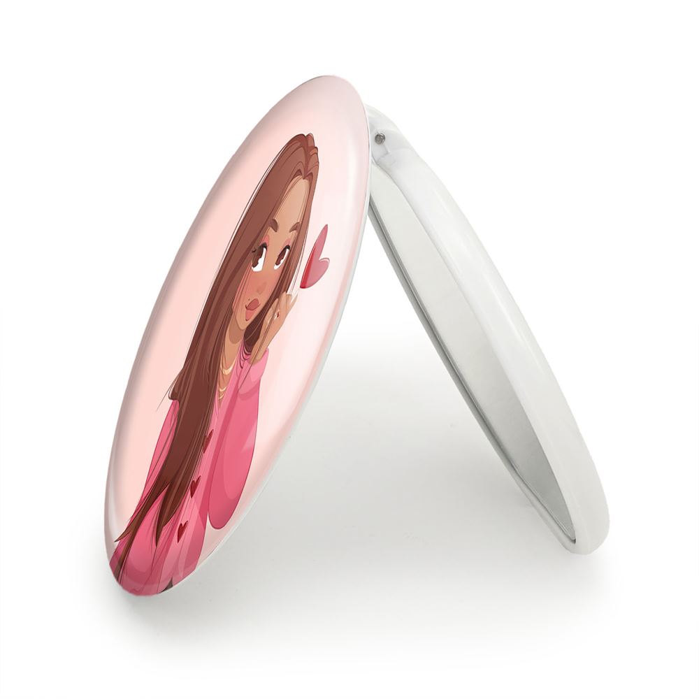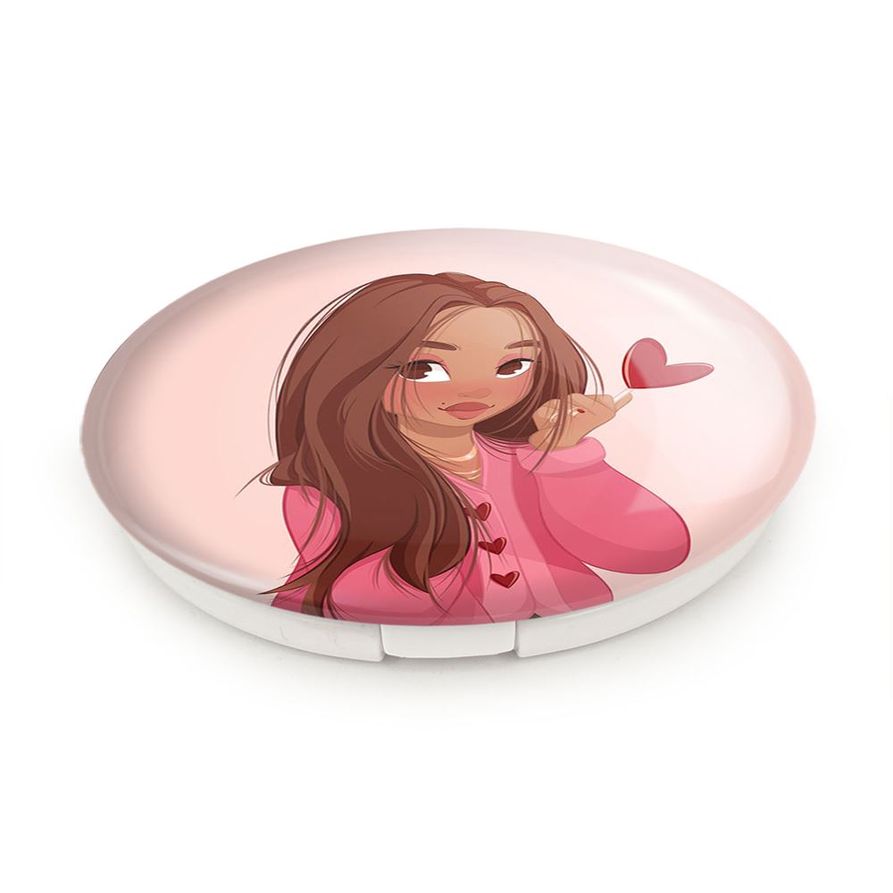 آینه های تاشو دخترانه خندالو، از جنس پلاستیک فشرده ABS تولید شده و به رنگ سفید می باشد. یکی از آینه ها ابعاد واقعی را نشان داده و دیگری با قابلیت بزرگنمایی، جزئیات را بهتر نمایش می دهد.