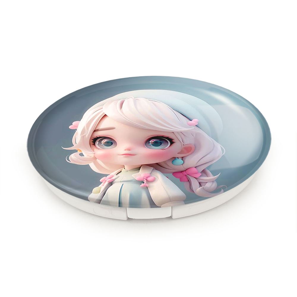 آینه های تاشو دخترانه خندالو، از جنس پلاستیک فشرده ABS تولید شده و به رنگ سفید می باشد. یکی از آینه ها ابعاد واقعی را نشان داده و دیگری با قابلیت بزرگنمایی، جزئیات را بهتر نمایش می دهد.
