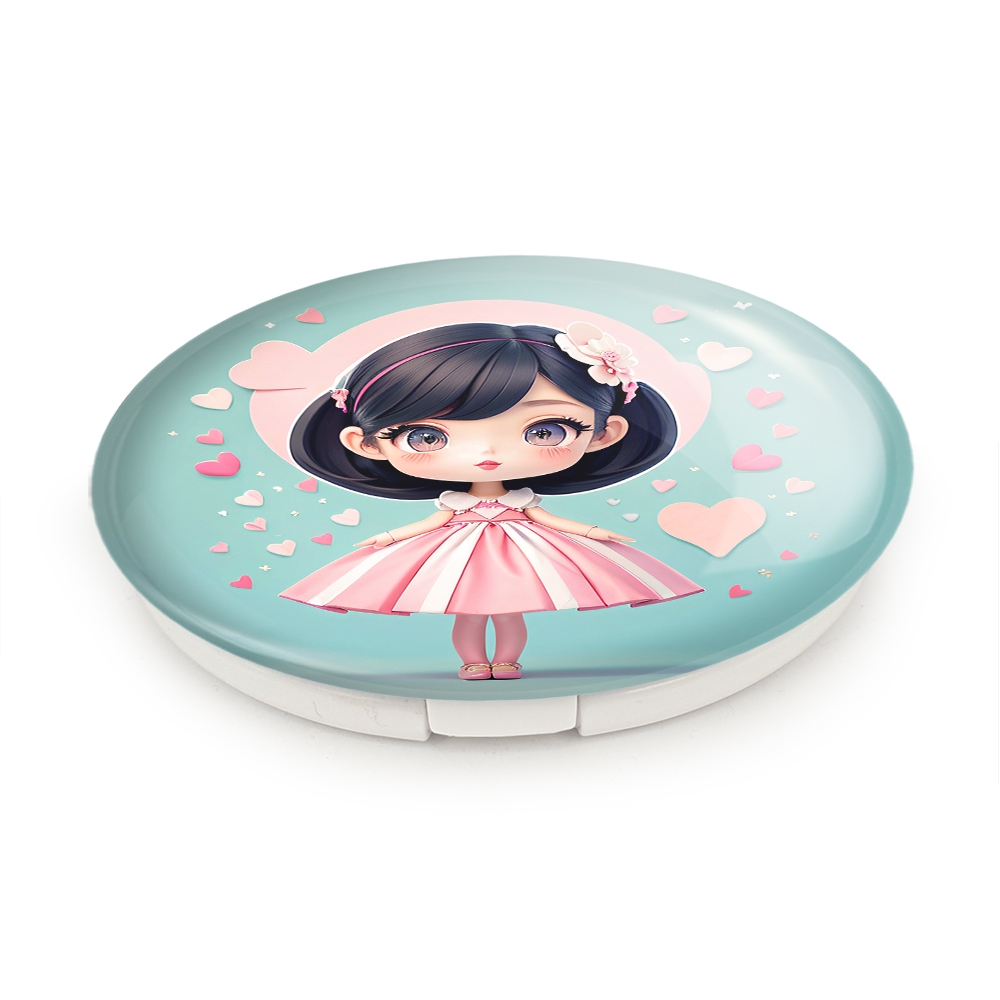آینه های تاشو دخترانه (Girlish) خندالو، از جنس پلاستیک فشرده ABS تولید شده و به رنگ سفید می باشد. یکی از آینه ها ابعاد واقعی را نشان داده و دیگری با قابلیت بزرگنمایی، جزئیات را بهتر نمایش می دهد.