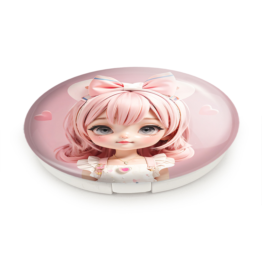 آینه های تاشو دخترانه (Girlish) خندالو، از جنس پلاستیک فشرده ABS تولید شده و به رنگ سفید می باشد. یکی از آینه ها ابعاد واقعی را نشان داده و دیگری با قابلیت بزرگنمایی، جزئیات را بهتر نمایش می دهد.