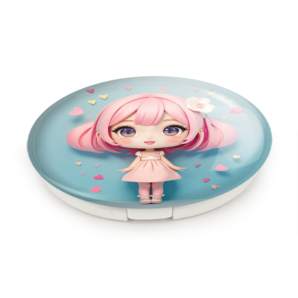 آینه های تاشو دخترانه (Girlish) خندالو، از جنس پلاستیک فشرده ABS تولید شده و به رنگ سفید می باشد. یکی از آینه ها ابعاد واقعی را نشان داده و دیگری با قابلیت بزرگنمایی، جزئیات را بهتر نمایش می دهد.