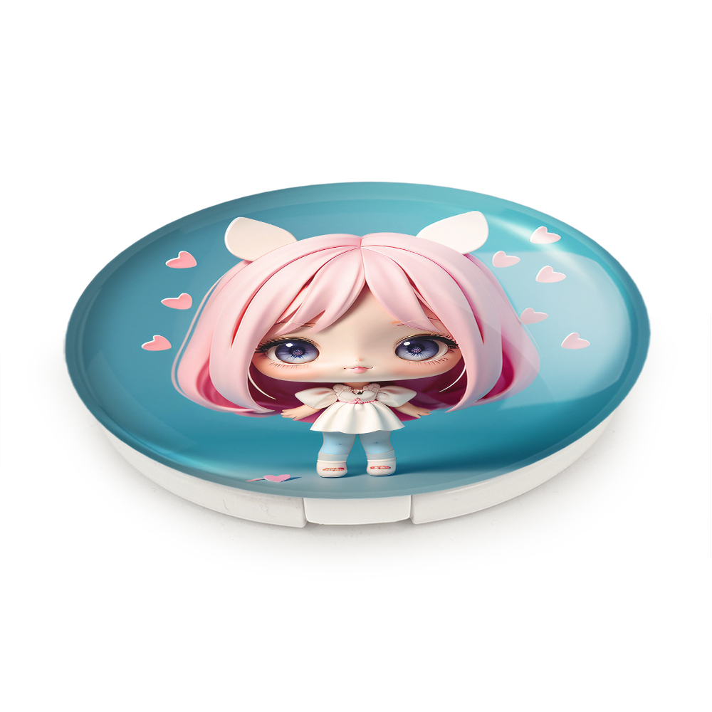 آینه های تاشو دخترانه (Girlish) خندالو، از جنس پلاستیک فشرده ABS تولید شده و به رنگ سفید می باشد. یکی از آینه ها ابعاد واقعی را نشان داده و دیگری با قابلیت بزرگنمایی، جزئیات را بهتر نمایش می دهد.