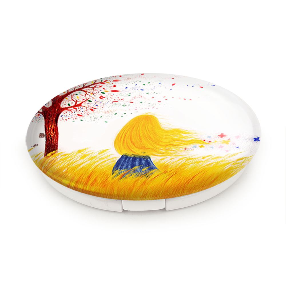 آینه های تاشو دخترونه خندالو، از جنس پلاستیک فشرده ABS تولید شده و به رنگ سفید می باشد. یکی از آینه ها ابعاد واقعی را نشان داده و دیگری با قابلیت بزرگنمایی، جزئیات را بهتر نمایش می دهد. ابعاد هر یک از آینه ها، دایره ای به قطر 7.5 سانت می باشد که نه خیلی بزرگ و غیر قابل استفاده در کیف آرایشی ست و نه خیلی کوچک که تصویر خاصی در آن مشاهده نشود. آینه تاشو دخترونه سایزی استاندارد و کارآمد دارد و در هر کیفی جا میگیرد. چاپ طرح بوسیله چاپگرهای دیجیتال شش رنگ با شفافیت و کیفیتی مثال زدنی بر روی یک وجه از بدنه ی آینه انجام گرفته و با روکش لمینت حرارتی پوشیده شده که در مقابل آسیب و خط و خش مقاوم بوده و کیفیت بالایی دارد. درب آینه بوسیله قفل بدنه ی آن، باز نمی ماند و کاملا بسته می شود و مناسب قرار گیری در کیف لوازم آرایش و کیف های کوچک دستی نیز هست. آینه های تاشو دخترونه خندالو با تنوع طرحی بسیار بالا، سلیقه هر نوع مخاطبی را تامین میکند.