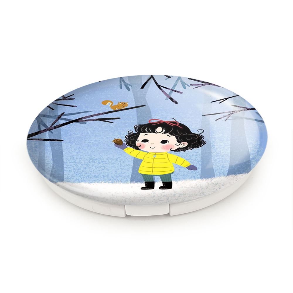 آینه های تاشو دخترونه خندالو، از جنس پلاستیک فشرده ABS تولید شده و به رنگ سفید می باشد. یکی از آینه ها ابعاد واقعی را نشان داده و دیگری با قابلیت بزرگنمایی، جزئیات را بهتر نمایش می دهد.