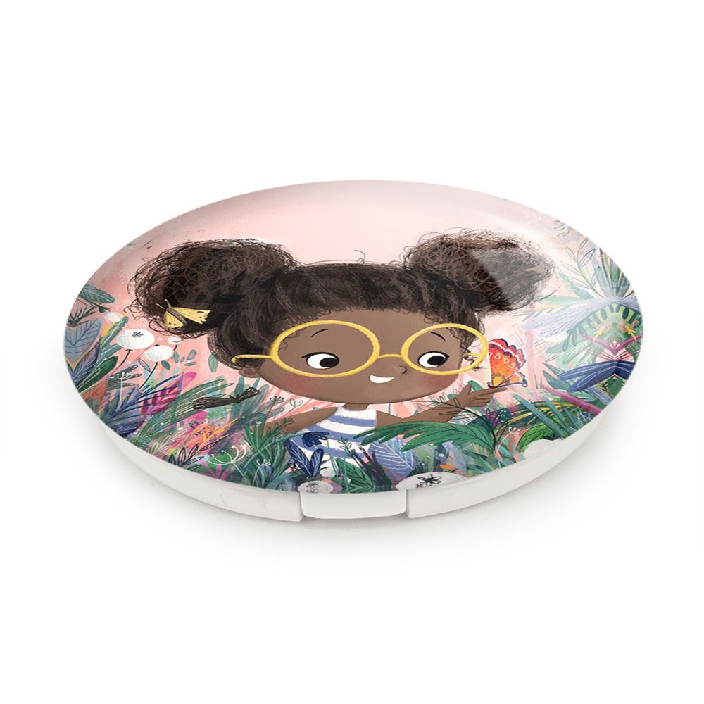 آینه های تاشو دخترونه خندالو، از جنس پلاستیک فشرده ABS تولید شده و به رنگ سفید می باشد. یکی از آینه ها ابعاد واقعی را نشان داده و دیگری با قابلیت بزرگنمایی، جزئیات را بهتر نمایش می دهد.