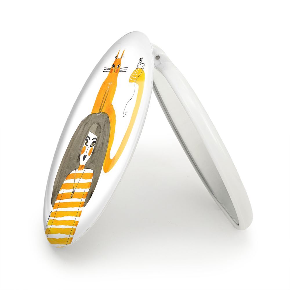 آینه های تاشو دخترونه خندالو، از جنس پلاستیک فشرده ABS تولید شده و به رنگ سفید می باشد. یکی از آینه ها ابعاد واقعی را نشان داده و دیگری با قابلیت بزرگنمایی، جزئیات را بهتر نمایش می دهد.