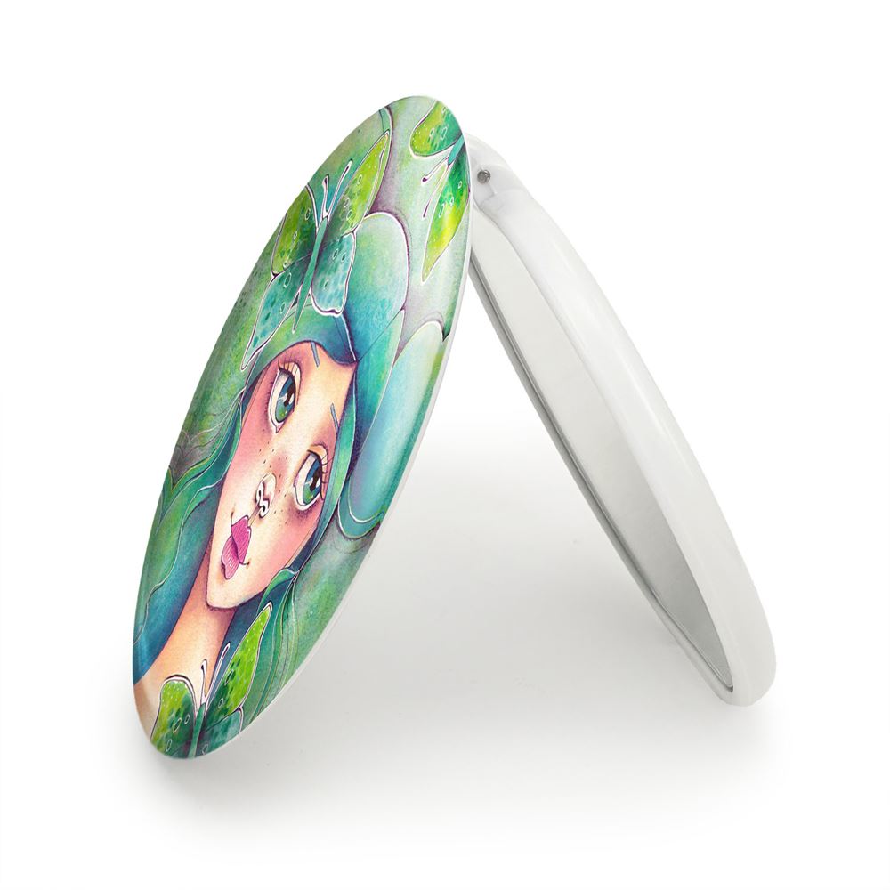 آینه های تاشو دخترونه خندالو، از جنس پلاستیک فشرده ABS تولید شده و به رنگ سفید می باشد. یکی از آینه ها ابعاد واقعی را نشان داده و دیگری با قابلیت بزرگنمایی، جزئیات را بهتر نمایش می دهد.