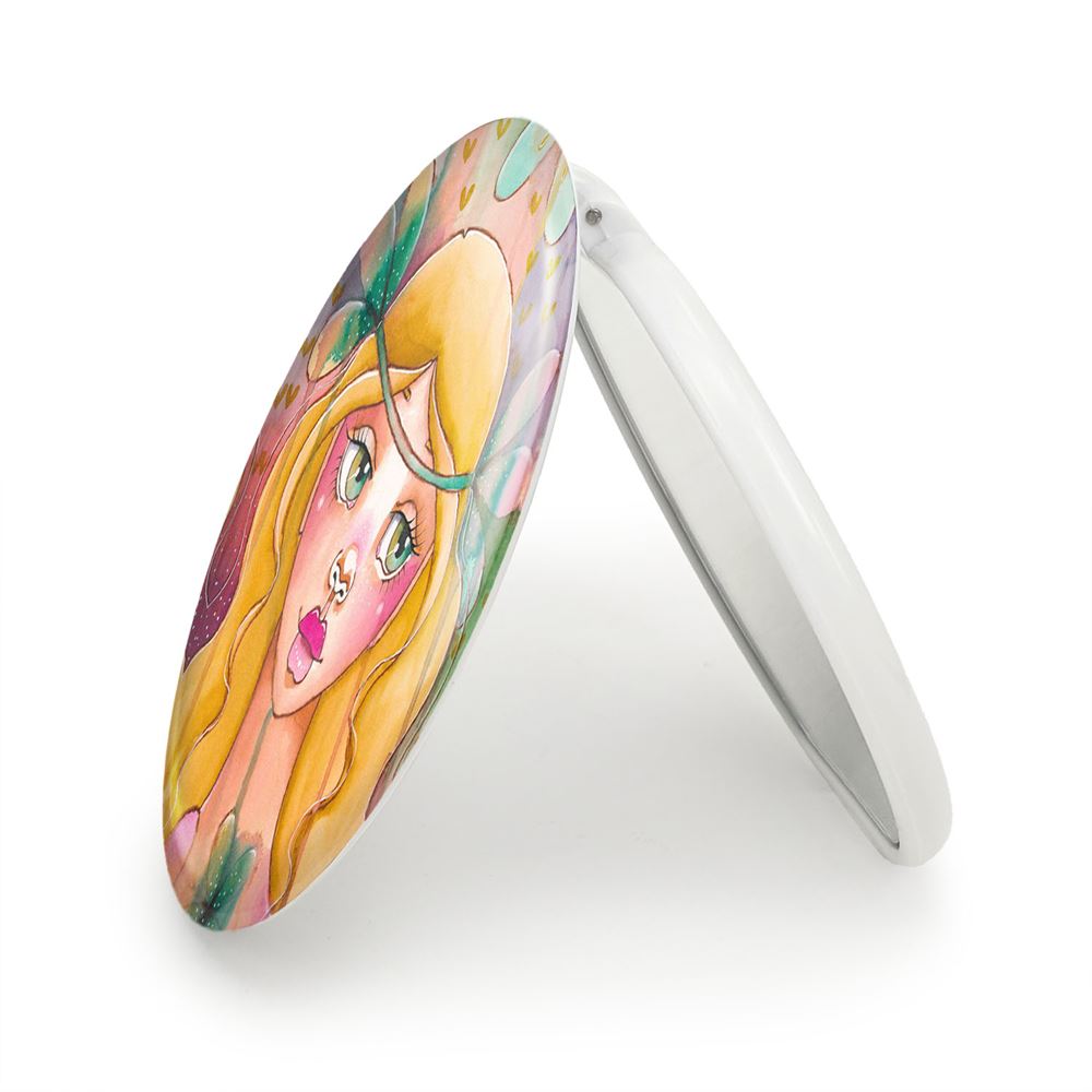 آینه های تاشو دخترونه خندالو، از جنس پلاستیک فشرده ABS تولید شده و به رنگ سفید می باشد. یکی از آینه ها ابعاد واقعی را نشان داده و دیگری با قابلیت بزرگنمایی، جزئیات را بهتر نمایش می دهد.