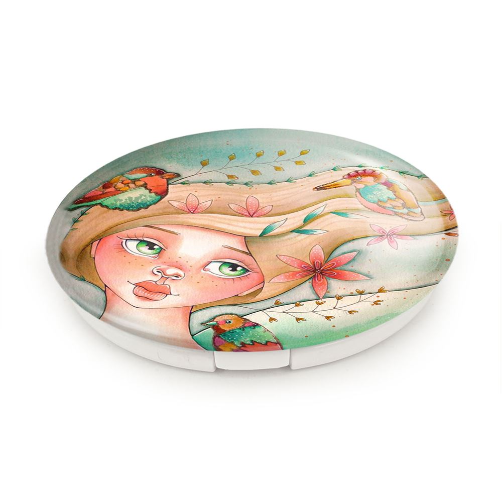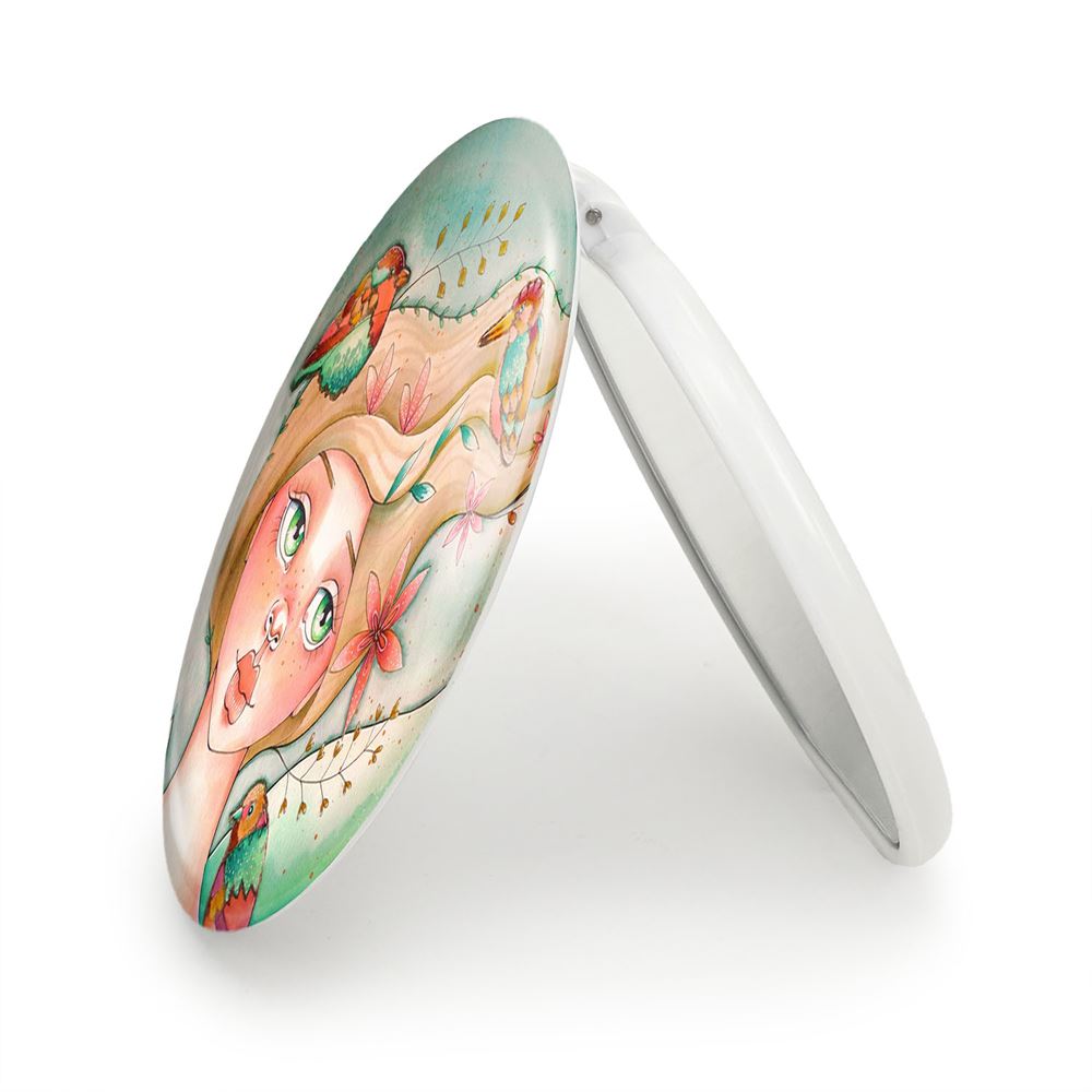 آینه های تاشو دخترونه خندالو، از جنس پلاستیک فشرده ABS تولید شده و به رنگ سفید می باشد. یکی از آینه ها ابعاد واقعی را نشان داده و دیگری با قابلیت بزرگنمایی، جزئیات را بهتر نمایش می دهد.