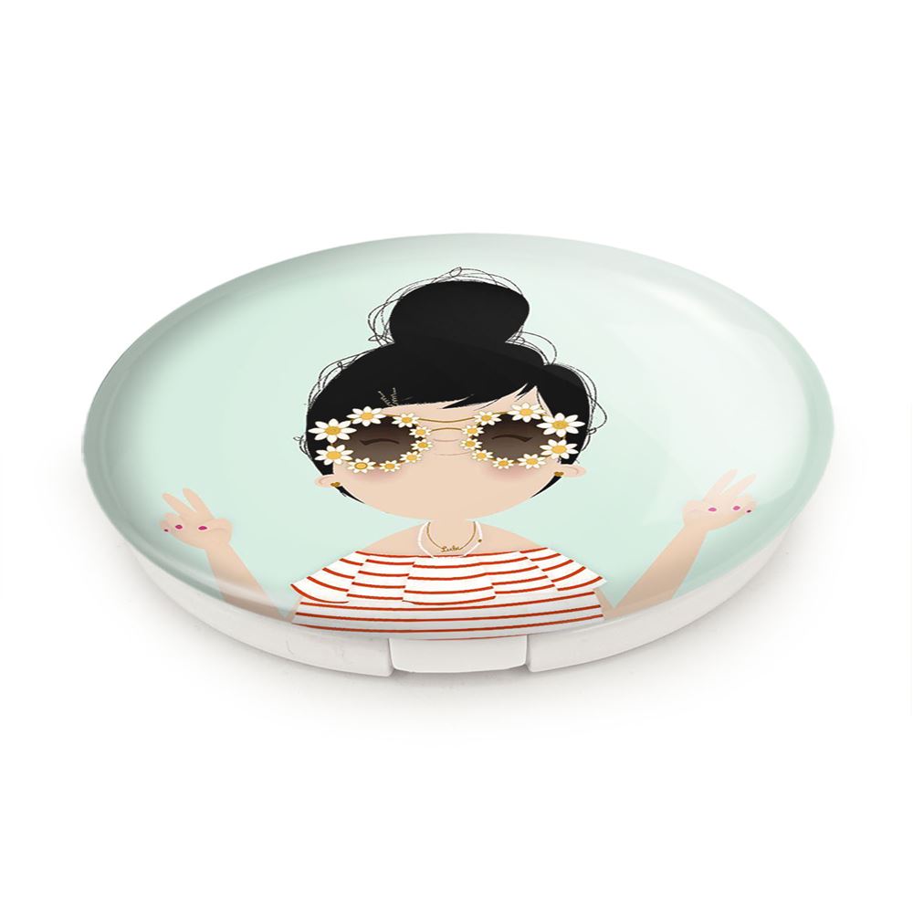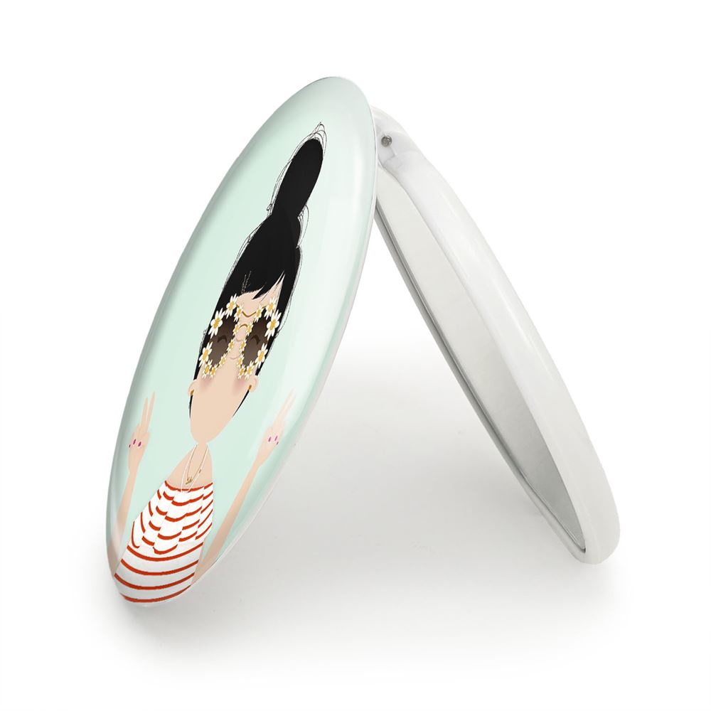 آینه های تاشو دخترونه خندالو، از جنس پلاستیک فشرده ABS تولید شده و به رنگ سفید می باشد. یکی از آینه ها ابعاد واقعی را نشان داده و دیگری با قابلیت بزرگنمایی، جزئیات را بهتر نمایش می دهد.