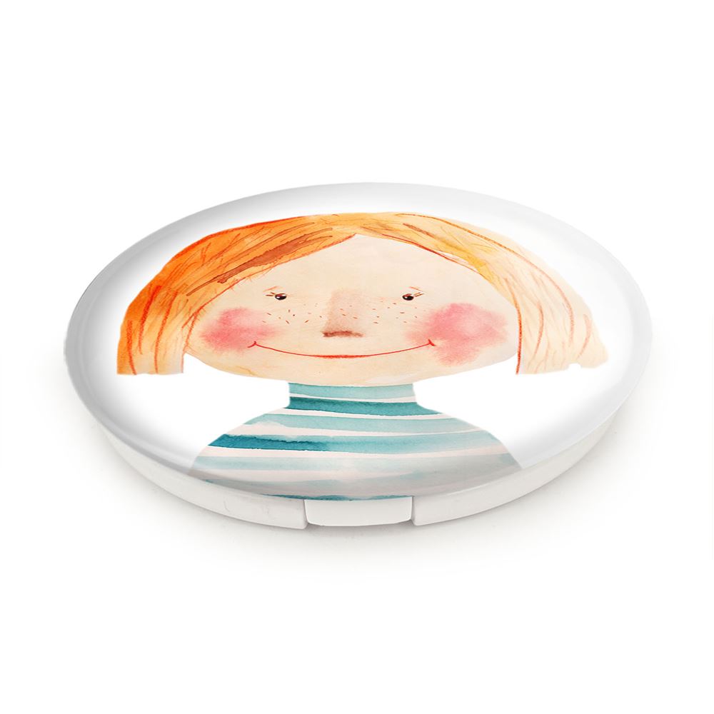 آینه های تاشو دخترونه خندالو، از جنس پلاستیک فشرده ABS تولید شده و به رنگ سفید می باشد. یکی از آینه ها ابعاد واقعی را نشان داده و دیگری با قابلیت بزرگنمایی، جزئیات را بهتر نمایش می دهد.