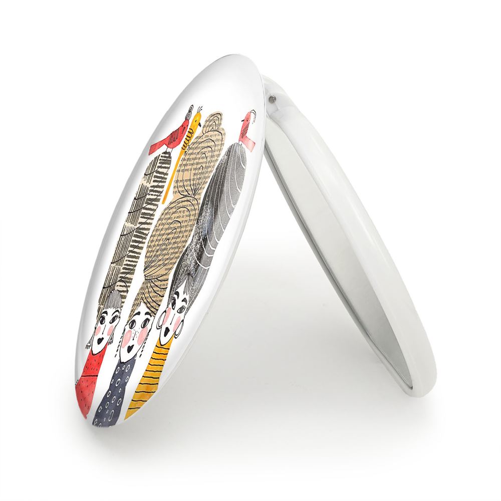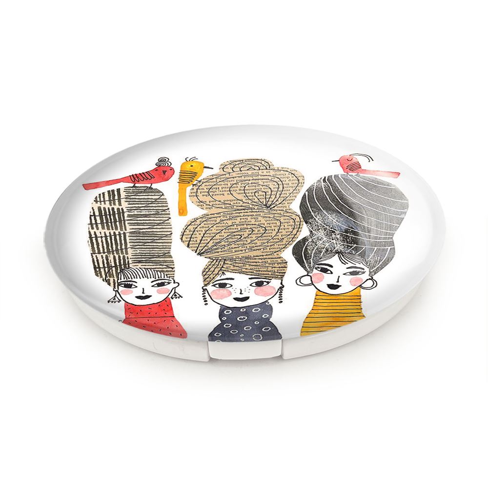 آینه های تاشو دخترونه خندالو، از جنس پلاستیک فشرده ABS تولید شده و به رنگ سفید می باشد. یکی از آینه ها ابعاد واقعی را نشان داده و دیگری با قابلیت بزرگنمایی، جزئیات را بهتر نمایش می دهد.