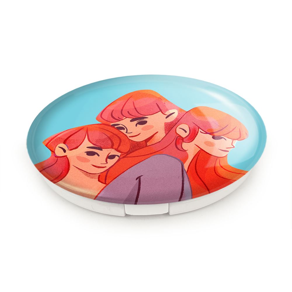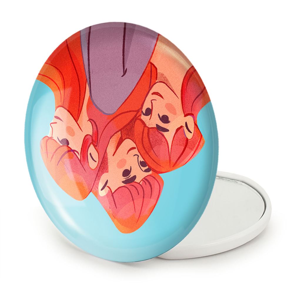 آینه های تاشو دخترونه خندالو، از جنس پلاستیک فشرده ABS تولید شده و به رنگ سفید می باشد. یکی از آینه ها ابعاد واقعی را نشان داده و دیگری با قابلیت بزرگنمایی، جزئیات را بهتر نمایش می دهد.