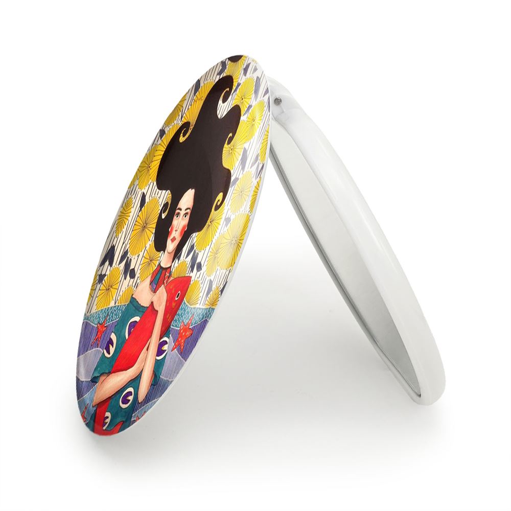 آینه های تاشو دخترونه خندالو، از جنس پلاستیک فشرده ABS تولید شده و به رنگ سفید می باشد. یکی از آینه ها ابعاد واقعی را نشان داده و دیگری با قابلیت بزرگنمایی، جزئیات را بهتر نمایش می دهد.