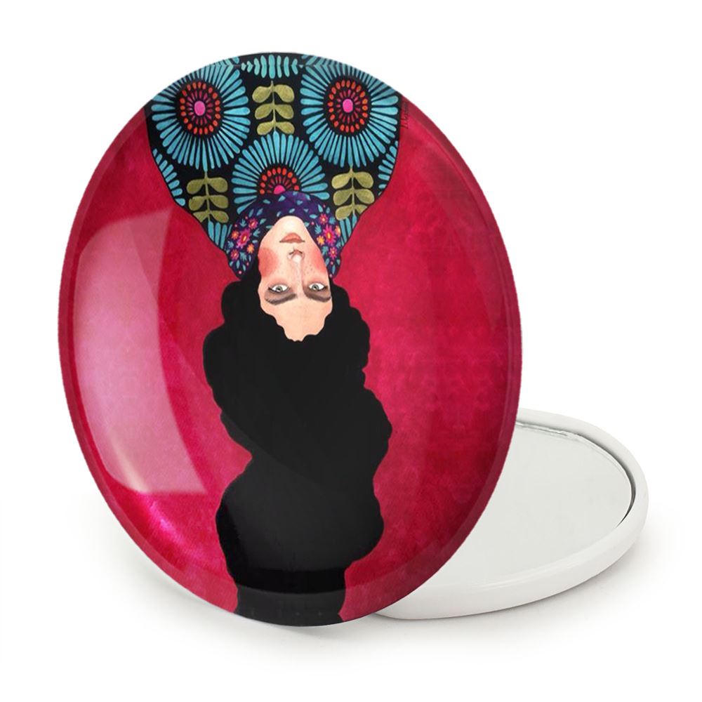 آینه های تاشو دخترونه خندالو، از جنس پلاستیک فشرده ABS تولید شده و به رنگ سفید می باشد. یکی از آینه ها ابعاد واقعی را نشان داده و دیگری با قابلیت بزرگنمایی، جزئیات را بهتر نمایش می دهد. ابعاد هر یک از آینه ها، دایره ای به قطر 7.5 سانت می باشد که نه خیلی بزرگ و غیر قابل استفاده در کیف آرایشی ست و نه خیلی کوچک که تصویر خاصی در آن مشاهده نشود. آینه تاشو دخترونه سایزی استاندارد و کارآمد دارد و در هر کیفی جا میگیرد. چاپ طرح بوسیله چاپگرهای دیجیتال شش رنگ با شفافیت و کیفیتی مثال زدنی بر روی یک وجه از بدنه ی آینه انجام گرفته و با روکش لمینت حرارتی پوشیده شده که در مقابل آسیب و خط و خش مقاوم بوده و کیفیت بالایی دارد. درب آینه بوسیله قفل بدنه ی آن، باز نمی ماند و کاملا بسته می شود و مناسب قرار گیری در کیف لوازم آرایش و کیف های کوچک دستی نیز هست. آینه های تاشو دخترونه خندالو با تنوع طرحی بسیار بالا، سلیقه هر نوع مخاطبی را تامین میکند.