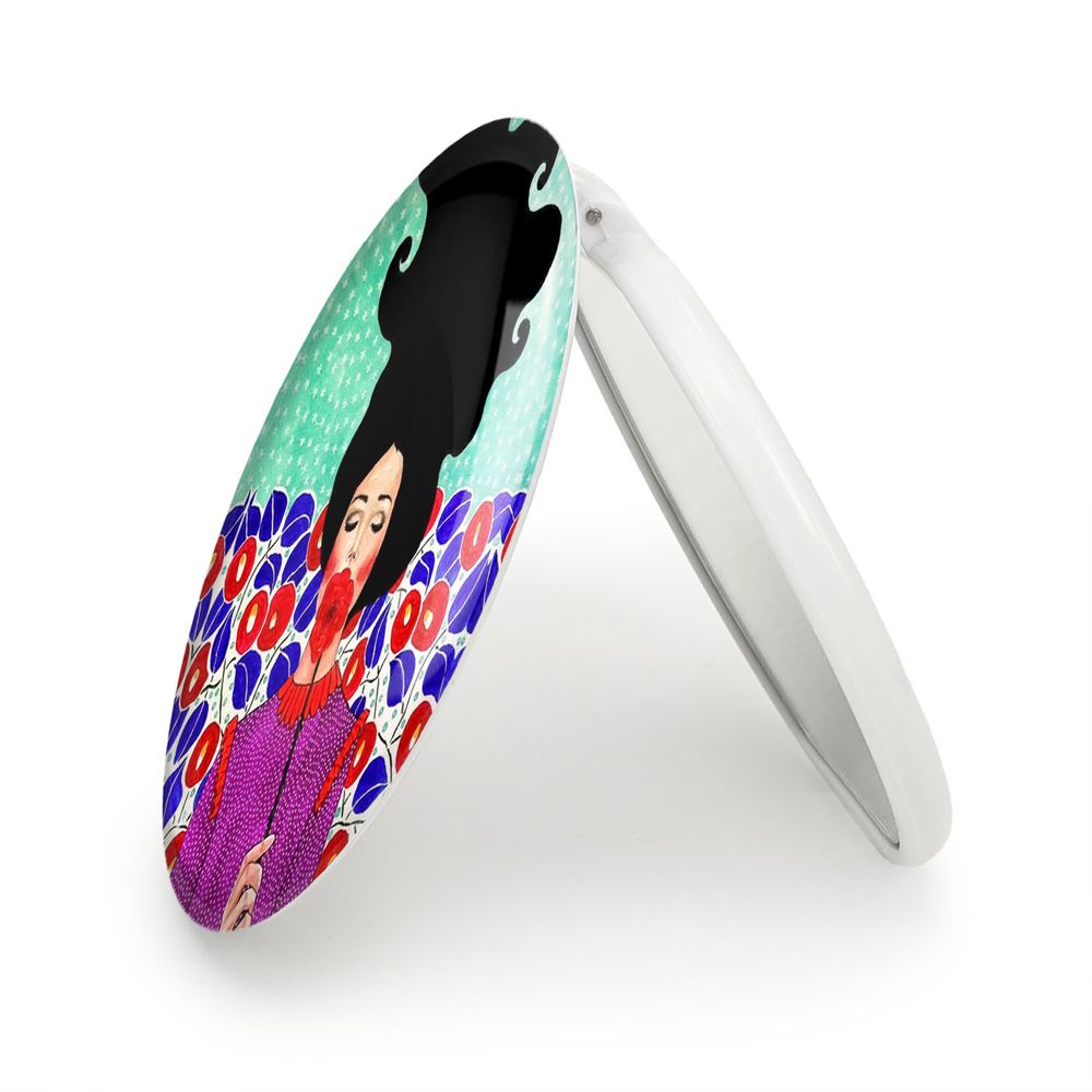 آینه های تاشو دخترونه خندالو، از جنس پلاستیک فشرده ABS تولید شده و به رنگ سفید می باشد. یکی از آینه ها ابعاد واقعی را نشان داده و دیگری با قابلیت بزرگنمایی، جزئیات را بهتر نمایش می دهد.