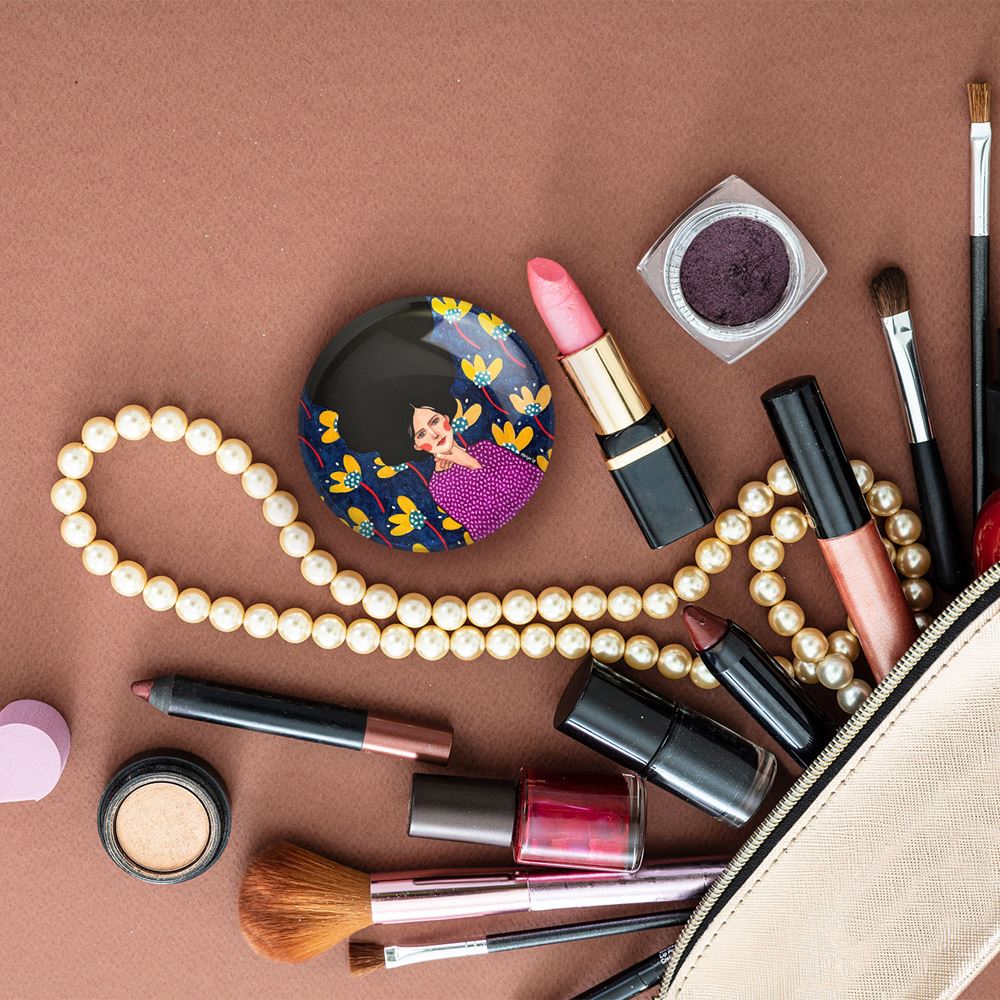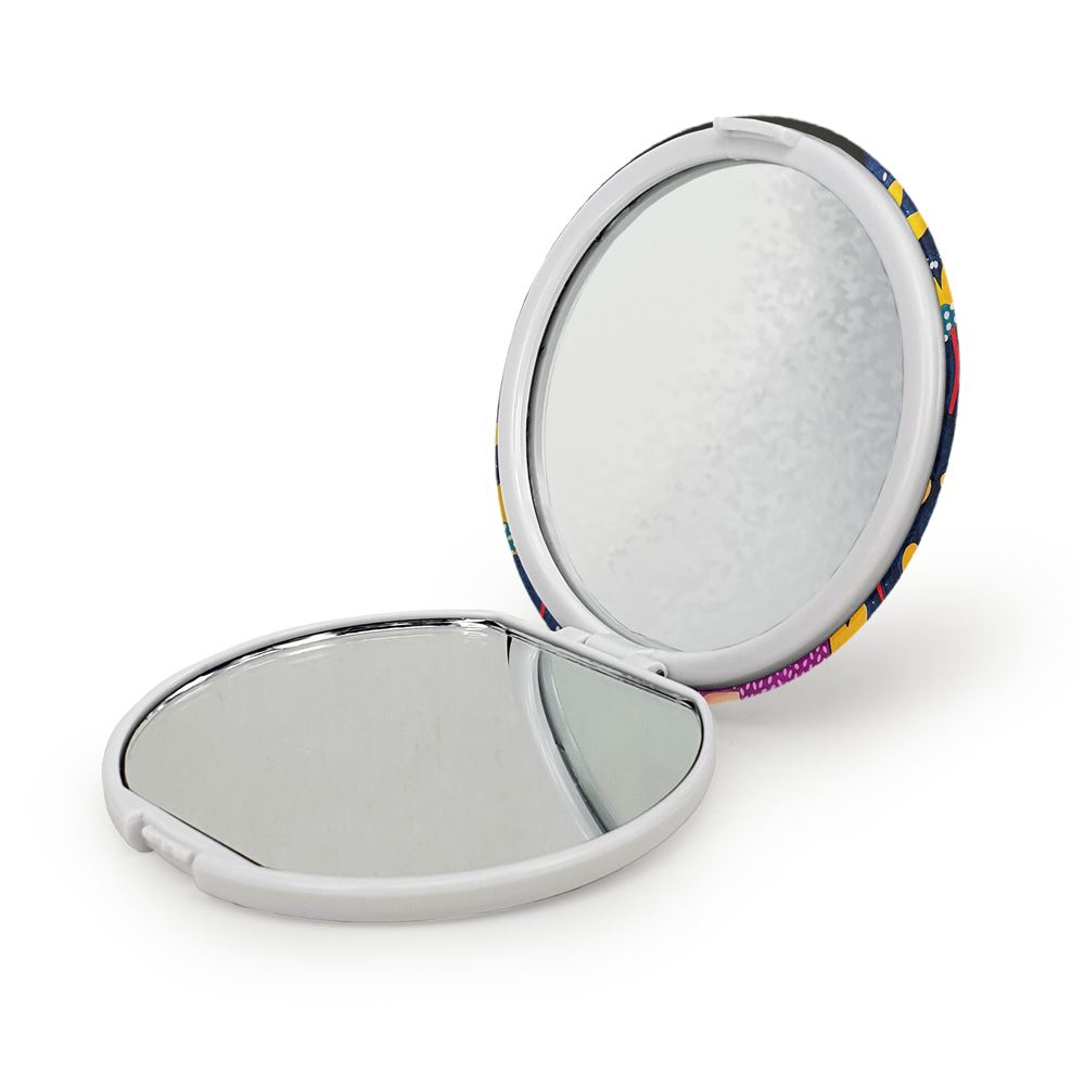 آینه های تاشو دخترونه خندالو، از جنس پلاستیک فشرده ABS تولید شده و به رنگ سفید می باشد. یکی از آینه ها ابعاد واقعی را نشان داده و دیگری با قابلیت بزرگنمایی، جزئیات را بهتر نمایش می دهد.