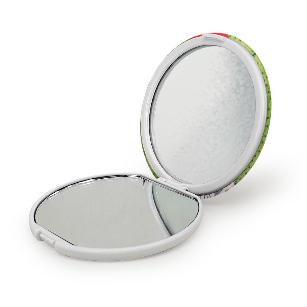 آینه های تاشو دخترونه خندالو، از جنس پلاستیک فشرده ABS تولید شده و به رنگ سفید می باشد. یکی از آینه ها ابعاد واقعی را نشان داده و دیگری با قابلیت بزرگنمایی، جزئیات را بهتر نمایش می دهد.